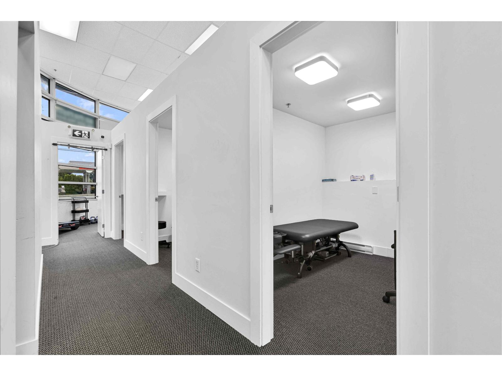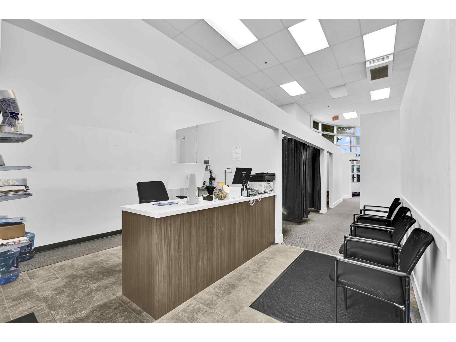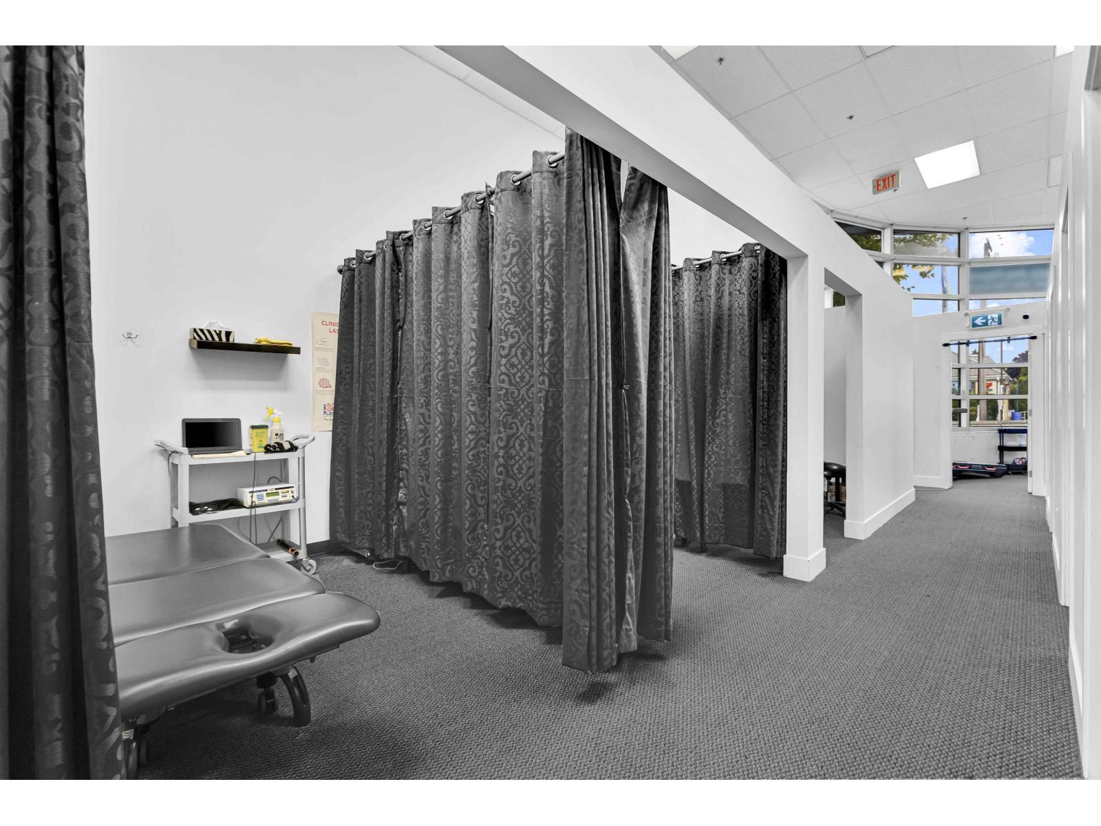 Turnkey Physiotherapy Clinic for sale at #102 - 6398 120 Street, Surrey. This 1,214 sq. ft. corner unit is in a prime high-traffic location at 120 Street and 64 Avenue with over 100 parking spots in the complex. Modern and fully built out, ideal for physiotherapy, chiropractic, massage therapy, or other healthcare uses. Surrounded by residential neighborhoods, medical offices, and retail amenities-perfect for professionals or investors seeking a ready-to-operate clinic in a thriving Surrey area. Equipment included: 2 BioFlex Lasers, hot pack machine, ultrasound machine, 3 TENS machines, electric heat pad, wired handheld massager, acupuncture/IMS needles, Bowflex treadmill, Marcy full-body workout machine, stationary bicycle, gym ball, weights, Therabands, weighing scale, 3 private rooms with Cardon beds, 3 curtained rooms with physio beds, staff room, storage room, 2 bathrooms, large front desk, office equipment, and city-approved LED lighting (front/back). (id:9345)...