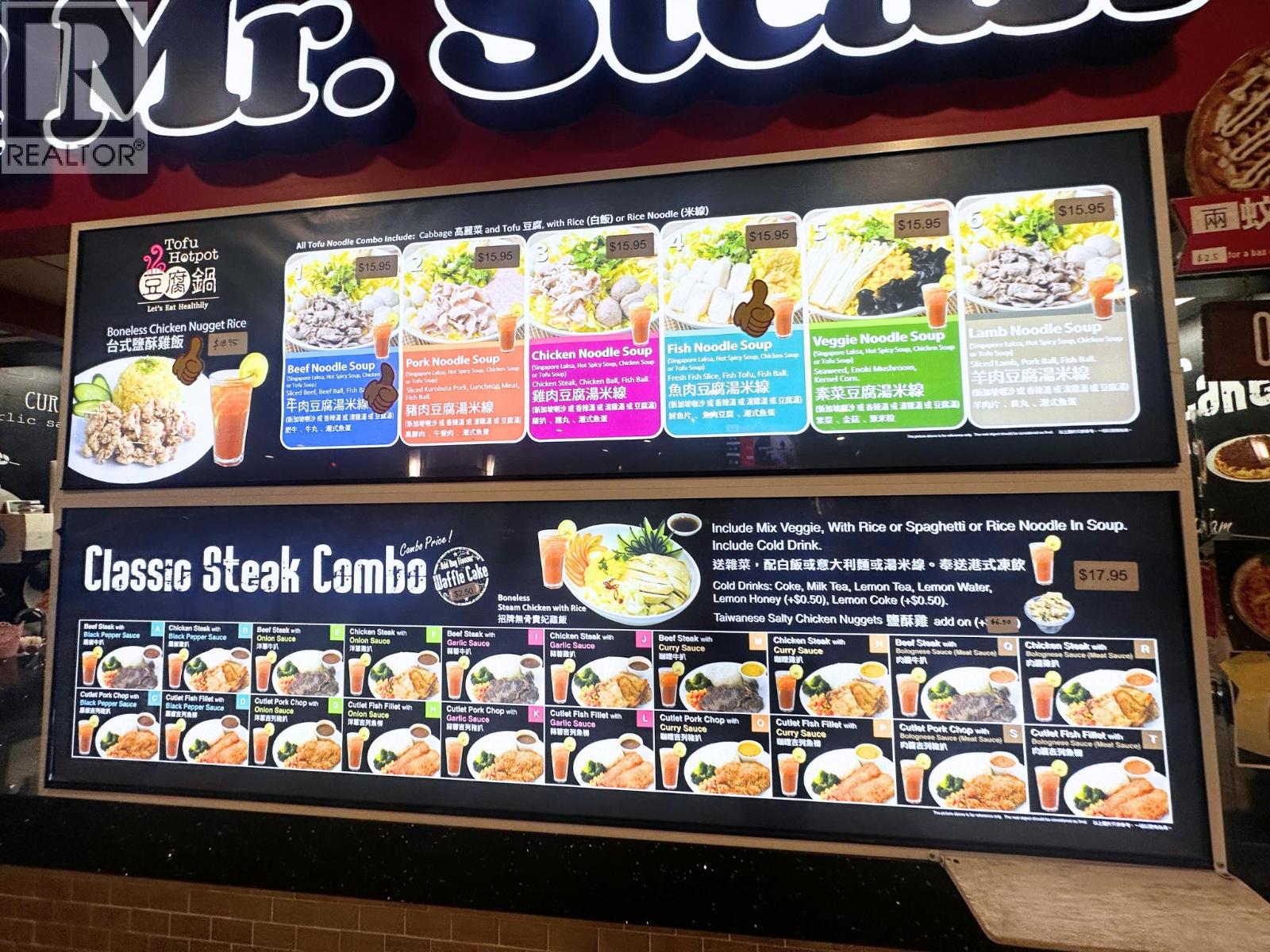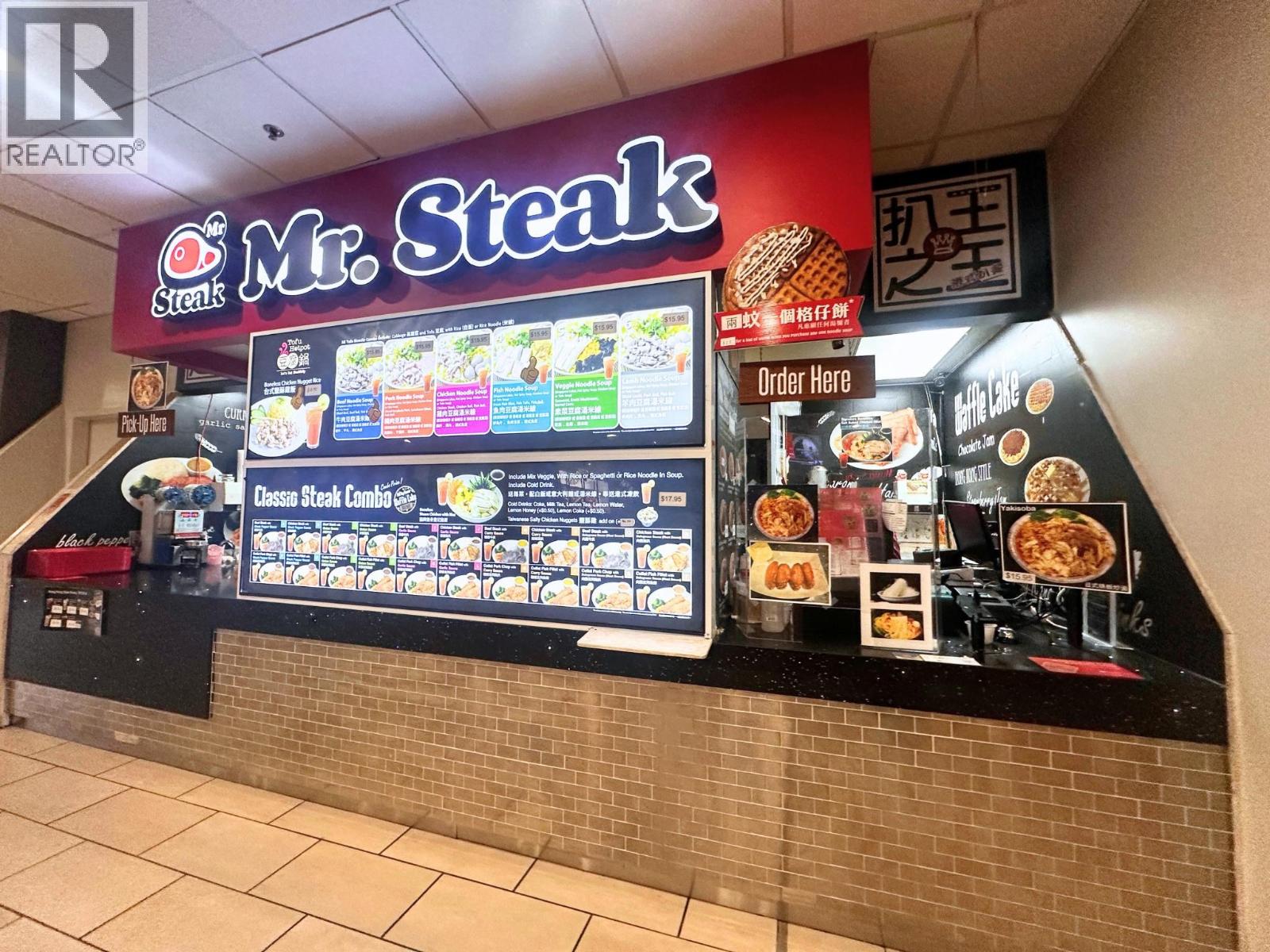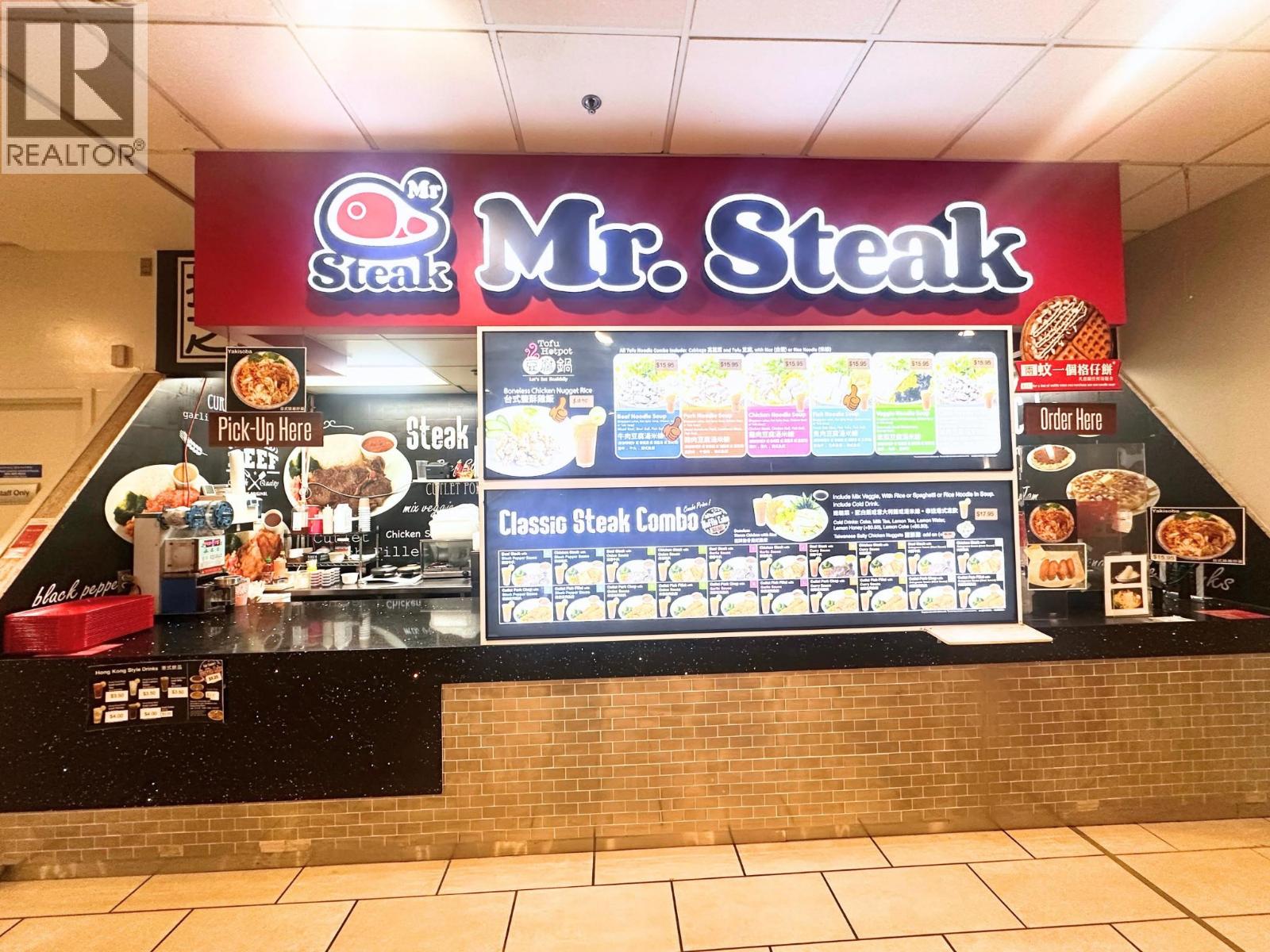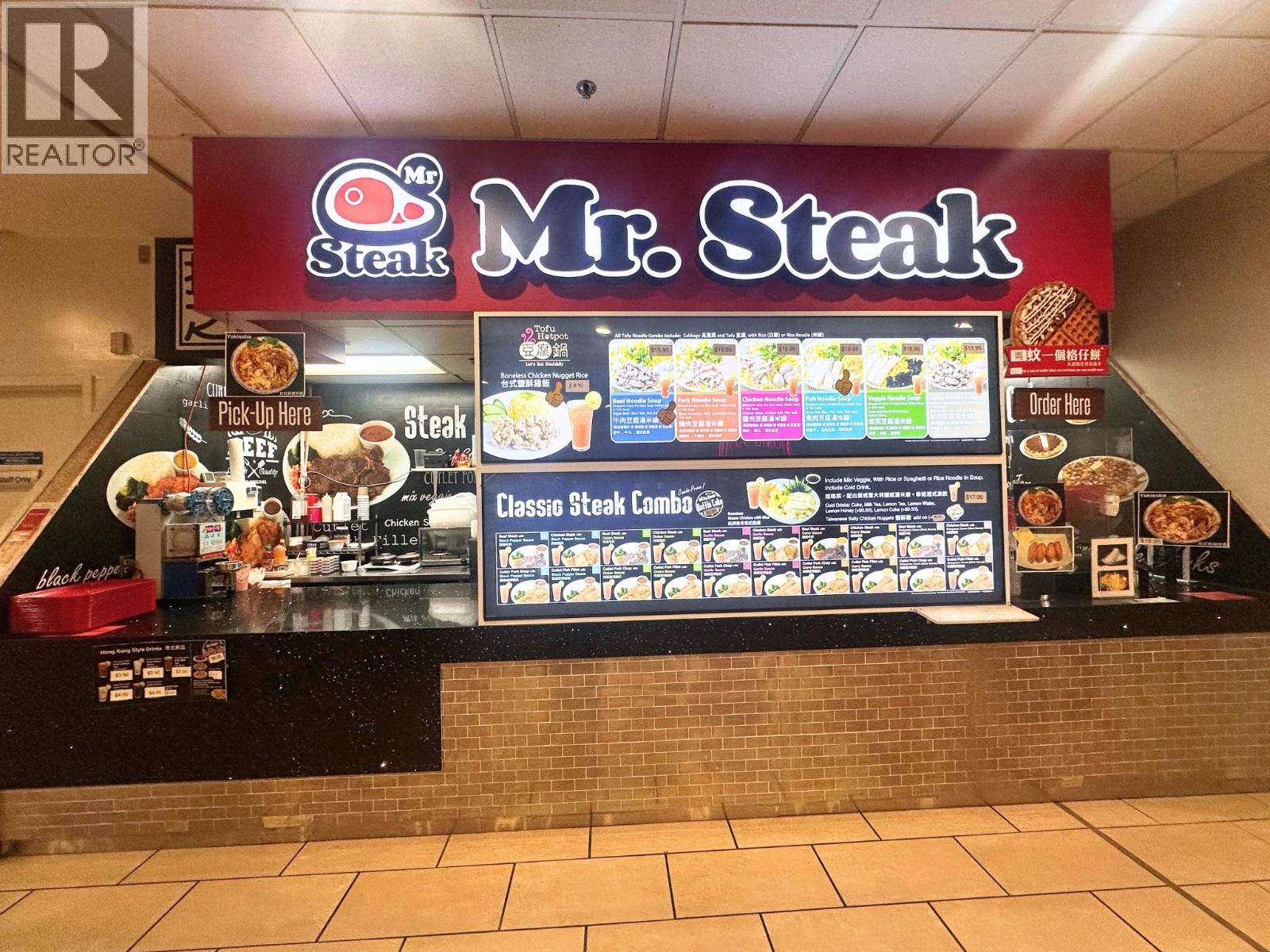 Own and operate a Mr Steak franchise in a bustling food court inside Royal Centre, one of downtown Vancouver's busiest commercial hubs. The location benefits from high daily foot traffic from office workers, shoppers, and visitors, and is near Burrard SkyTrain Station for easy access.Royal Centre is undergoing a multi-million-dollar renovation of its lobby and retail spaces to modernize the shopping and dining environment. Once completed, foot traffic and visibility will increase, providing an even stronger customer base. The unit is turnkey ready, ideal for fast-casual operations, takeout, and dine-in service. The menu features premium steaks and classic Western fast-casual dishes, appealing to customers seeking quick, high-quality meals. Improved internal pathways offer additional growth potential.This is an excellent opportunity to operate under the established Mr Steak brand in a prime downtown location. Don't miss this high-traffic, turnkey business with strong growth potential. (id:9345)...