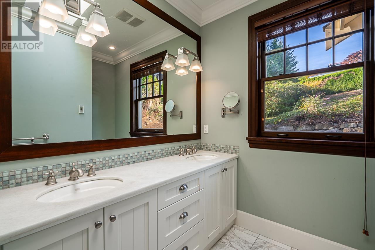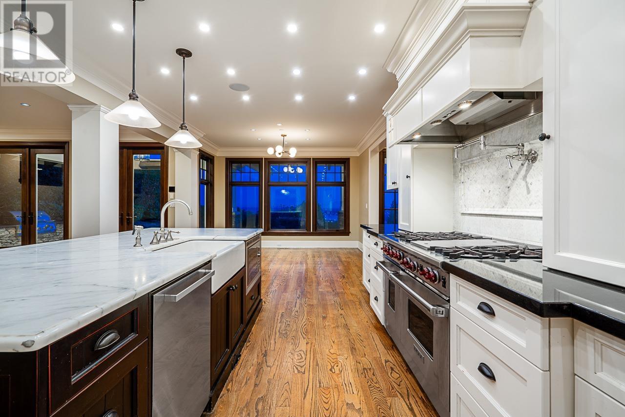 STUNNING 6-BEDROOM "2025" RENOVATED HOME WITH SPECTACULAR PANORAMIC VIEW OF LIONS-GATE-BRIDGE, DOWNTOWN AND STANLEY PARK ON HIGH SIDE OF A LARGE 17,502 SQFT LOT. This amazing home, with a heated driveway, features on the main flr a spacious living rm and private dining rm, stunning gourmet kitchen, eating area, large family rm and bdrm/den. Upper flr features grand primary bedrm w/stunning en-suite, plus 3 spacious bedrms. Lower flr features large rec-rm with bar and wine rm ideal for entertaining, 2 additional bedrms and gym. Centrally located, walking distance to Chartwell Elementary & Sentinel Secondary Schools, and only minutes drive to Mulgrave and Collingwood Private Schools. PLUS: heated driveway, A/C, solid hardwd flring, extensive millwork, high-end finishing and much more ... (id:9345)...
