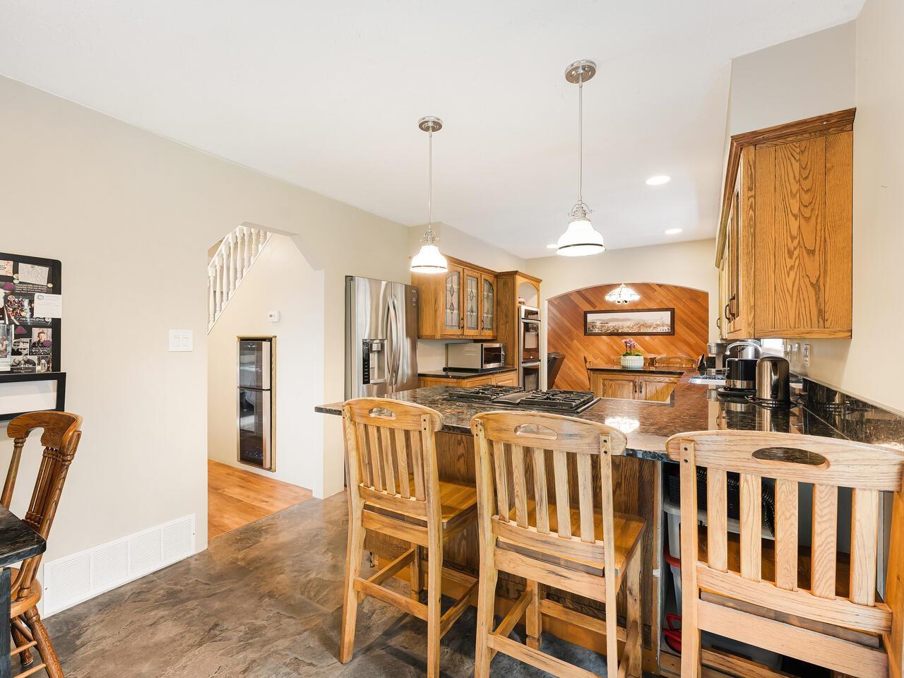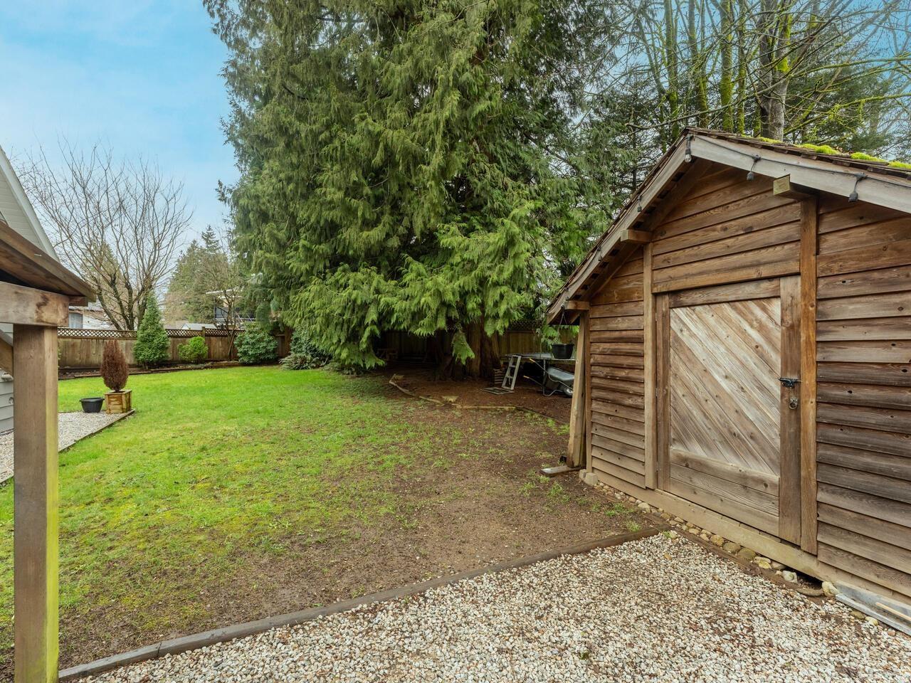 This 3 bed 3 bath house sits on an extra large lot with a very private fenced yard. French doors from dining room lead to big deck and nice garden area. Updated quality kitchen with large granite counters and lots of work space. Solid oak cabinets, custom lead glass, built in-oven & gas stove top, lots of room for family gatherings. Good sized living room with cozy gas fireplace. The Primary bedroom is very convenient on main floor & has an ensuite bathroom. Upstairs are two huge bedrooms and a powder room. Large garage being used as a BIG WORKSHOP with lots of storage. Great family friendly cul-de-sac. Quick walk to Betty Huff Elem & Queen Elizabeth Sec. shops and services, sky train, hospital all conveniently close. (id:9345)...
