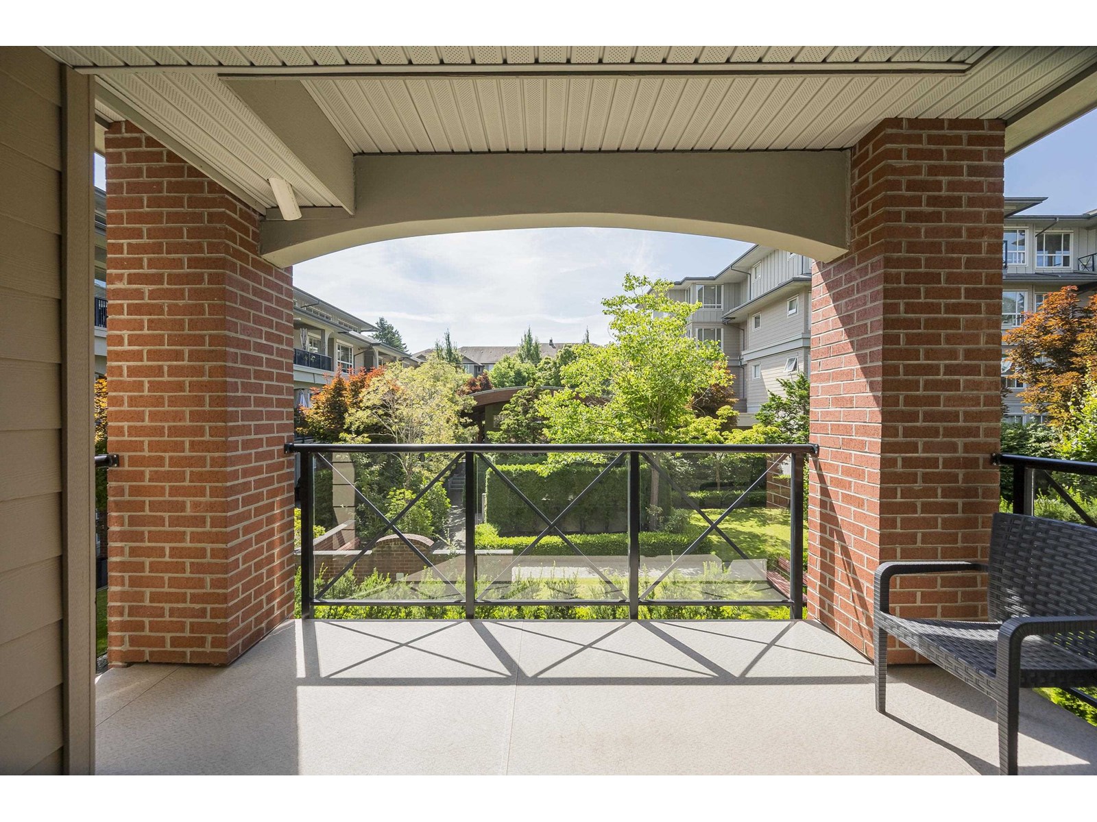 Welcome to The Madison by award-winning Genex-one of South Surrey's most sought-after buildings. This spacious, beautifully maintained 2-bed, 2-bath home features radiant in-floor hot water heating, 9' ceilings, a cozy gas fireplace, and a large covered balcony south-facing into quiet courtyard gardens, perfect for year-round enjoyment. Enjoy a functional open-concept layout with a bright kitchen, new on-demand hot water, freshly painted, and a serene primary suite with tasteful bathroom upgrades, a separate tub and shower. Located in a quiet yet central neighbourhood just steps to Semiahmoo Mall, restaurants, parks, Peace Arch Hospital, and transit. Includes 2 parking stalls, a storage locker, a full gym, a fireside lounge, and ample visitor parking. Move-in ready (id:9345)...