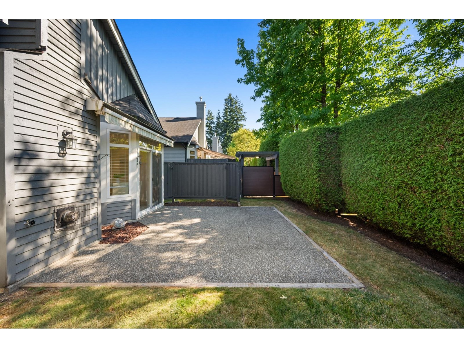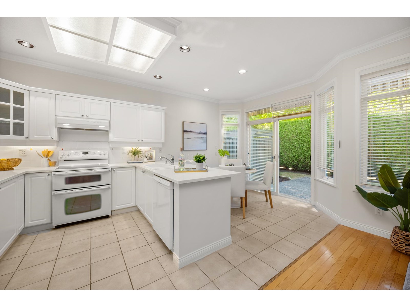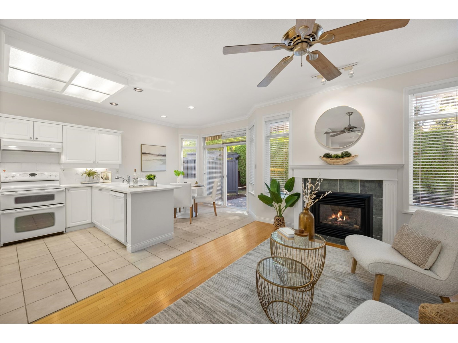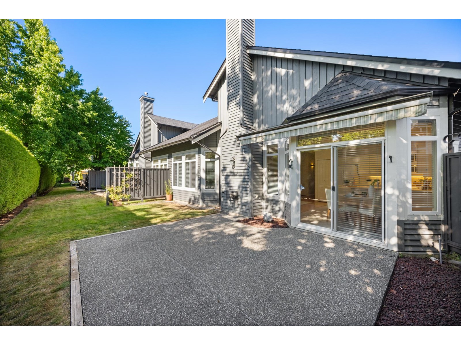 Ponderosa Station! Beautiful 2-bed 2-bath townhome located in a quiet area of this gated community. Well cared for, this open one-level home is ready to welcome you. Large open spaces with hardwood & tile flooring throughout. Spacious living room with gas fireplace & dining room easily accommodates full-sized furniture for entertaining. Large private backyard has an oversized patio with retractable awning & is conveniently accessed from the kitchen/eating area. A family room with another gas fireplace is a cozy space for relaxation & conversation. The generous primary bedroom has a walk-through closet with mirrored doors leading to a 5-piece ensuite. A second spacious bedroom & powder room with shower are located apart from the primary. Close to shopping, recreation, and Crescent Beach. (id:9345)...