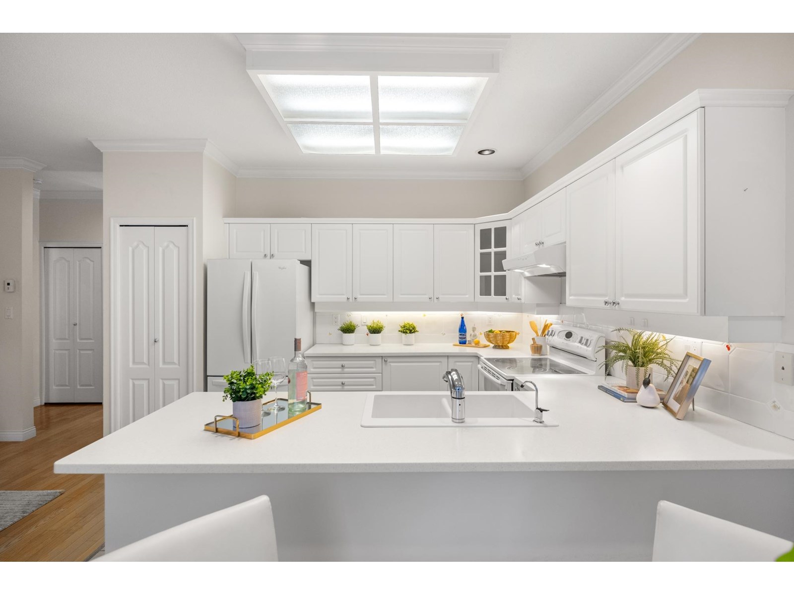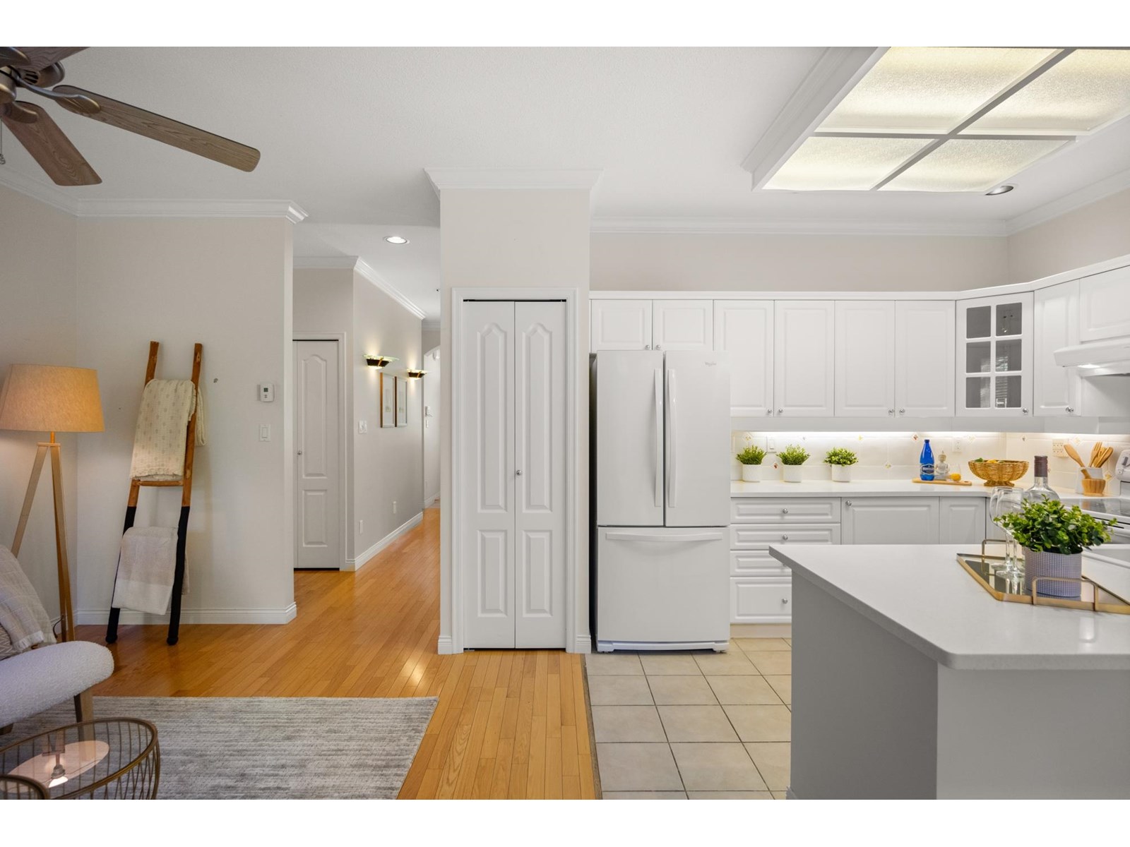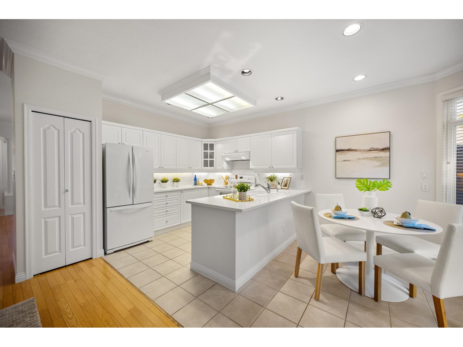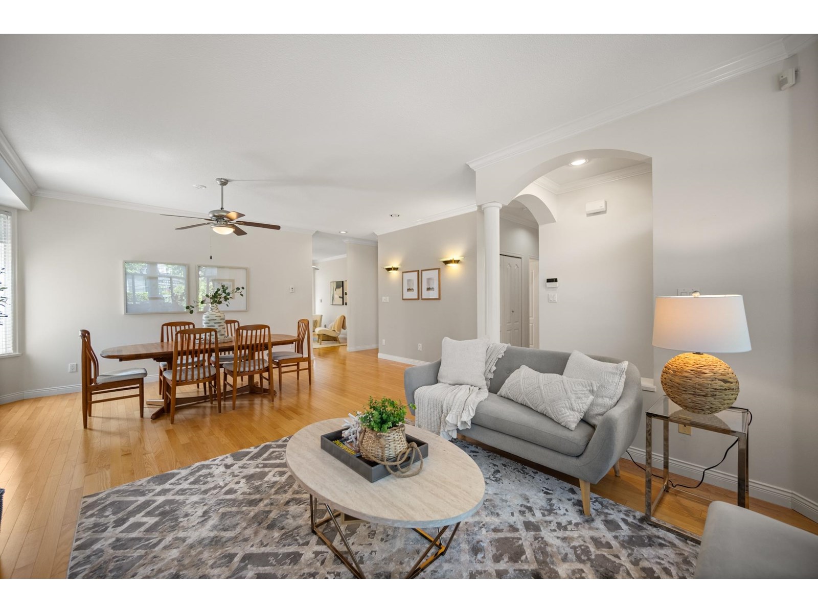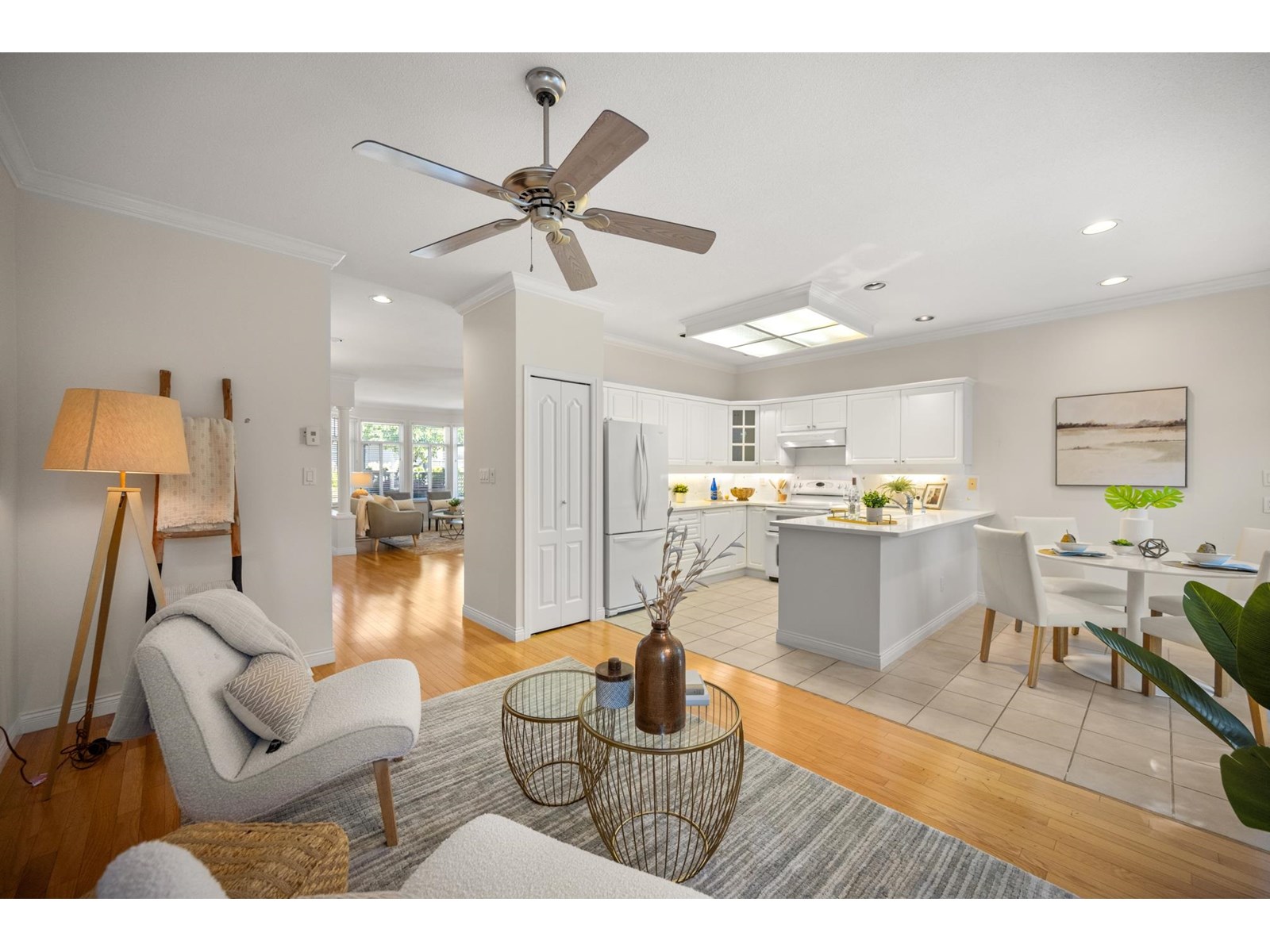 Ponderosa Station! Beautiful 2-bed 2-bath townhome located in a quiet area of this gated community. Well cared for, this open one-level home is ready to welcome you. Large open spaces with hardwood & tile flooring throughout. Spacious living room with gas fireplace & dining room easily accommodates full-sized furniture for entertaining. Large private backyard has an oversized patio with retractable awning & is conveniently accessed from the kitchen/eating area. A family room with another gas fireplace is a cozy space for relaxation & conversation. The generous primary bedroom has a walk-through closet with mirrored doors leading to a 5-piece ensuite. A second spacious bedroom & powder room with shower are located apart from the primary. Close to shopping, recreation, and Crescent Beach. (id:9345)...