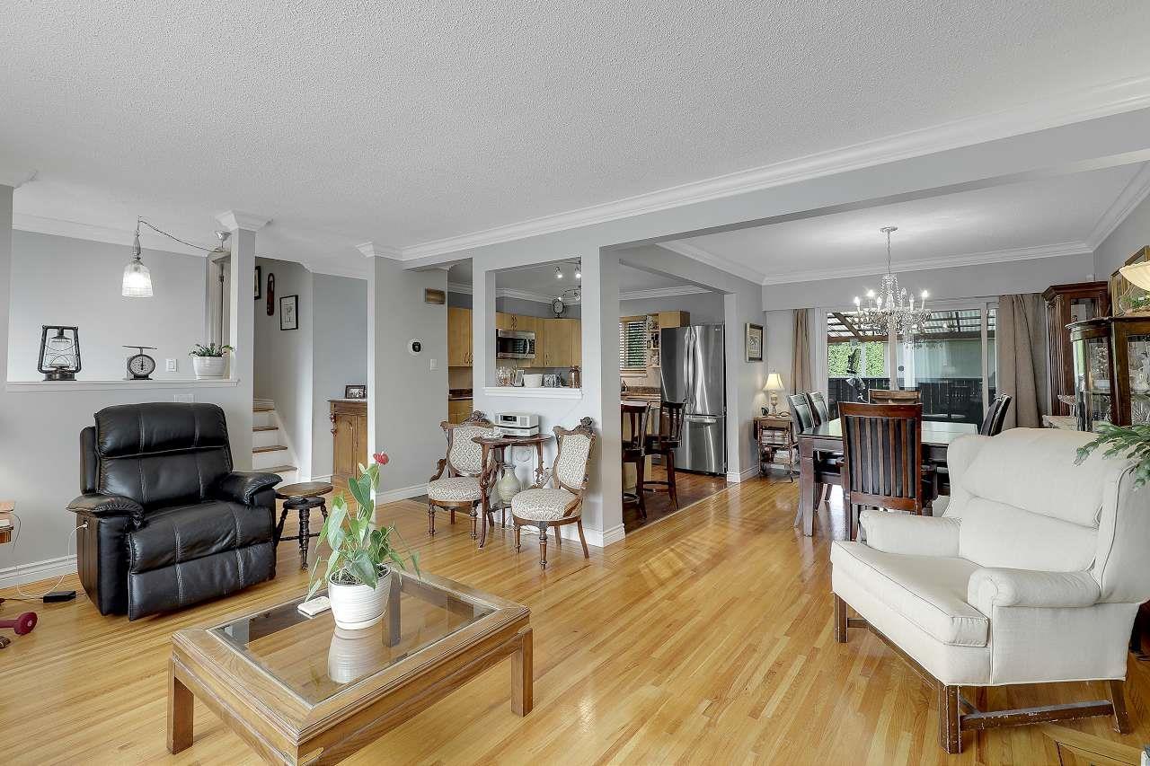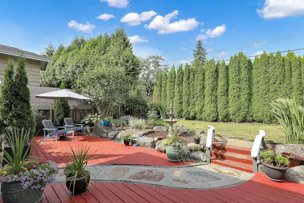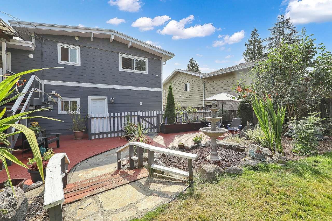 Lovingly maintained and updated over the years. Over 2200 sq ft 4 bdrm, 3 bath, 2 kitchen, on no through part of 152 St in popular Birdland. Main fl with open plan, ideal for entertaining. Kit with large island, newer appls and all 3 bathrooms renovated, 2 recently. Other updates incl refinished hdwds, windows, heat pump & air cond, drain tiles and crown molding. New Hardy brd exterior and paint. Bsmt has new 3 piece bth updated wht kitchen and sep entrance. Huge 20 x 19 raised covered deck off dining rm overlooking a private bk yard with lower grd level deck with water feature and landscaped gardens. Within walking distance to Guildford Mall, rec centre, restaurants and schools. Easy access to Hwy 1, Port Mann, T&T and buses. (id:9345)...