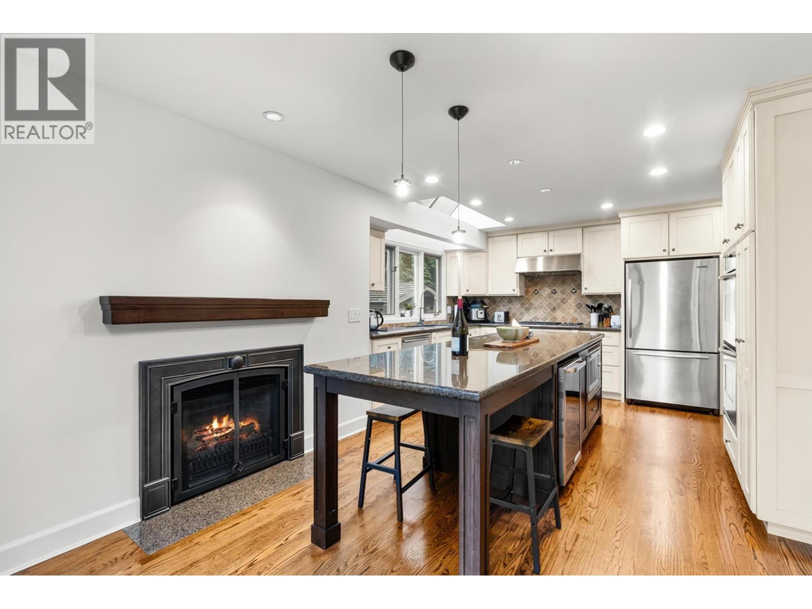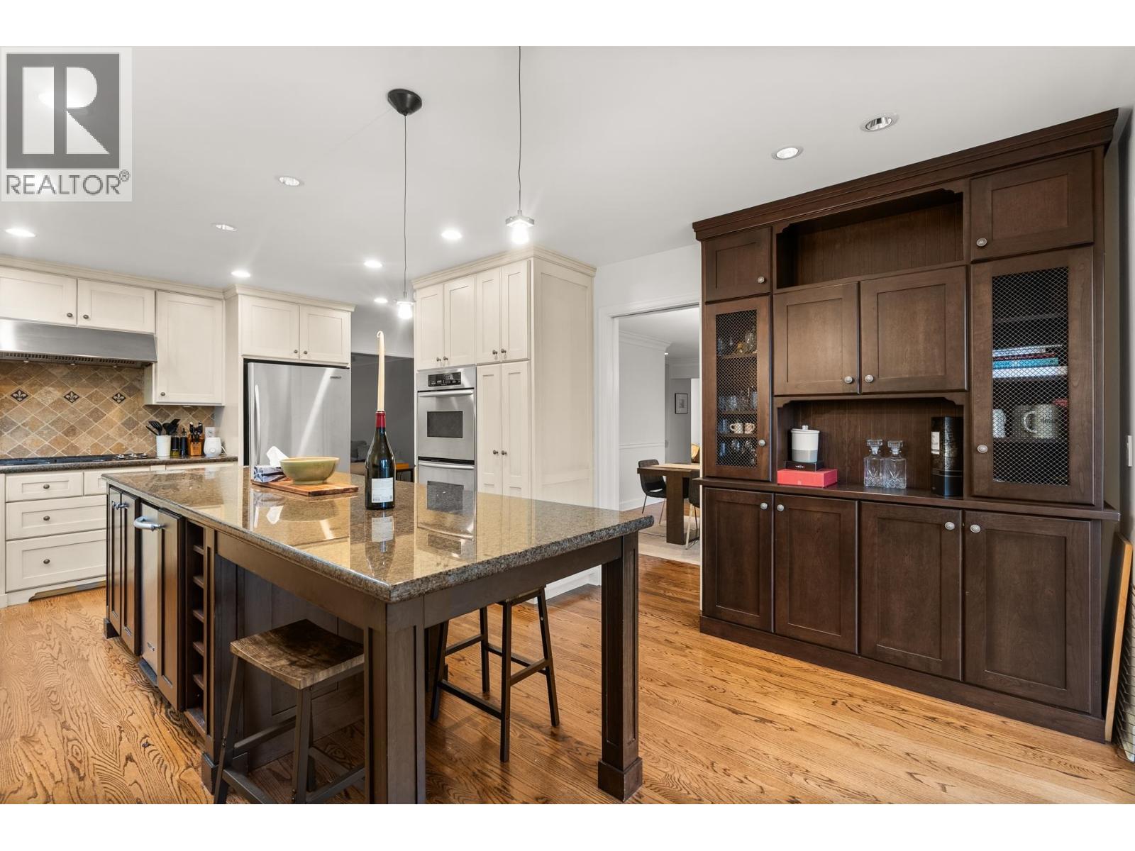 Exceptional family home, tastefully renovated in 2006, offering approx. 3,500 sqft across three levels. The traditional layout includes 4 well-appointed bedrooms upstairs, highlighted by a luxurious primary suite with a walk-in closet and elegant ensuite. Main level features a welcoming foyer, formal living and dining rooms with large windows, rich hardwood and slate flooring, a gourmet island kitchen with breakfast bar, adjoining eating area, family room with coffered ceilings, fireplace and media centre, plus a private office, rec room, and oversized double garage. French doors lead to a beautifully landscaped 1/3 acre with serene patios and lush gardens. Walk to West Bay School, McKechnie Park, and Dundarave. (id:9345)...