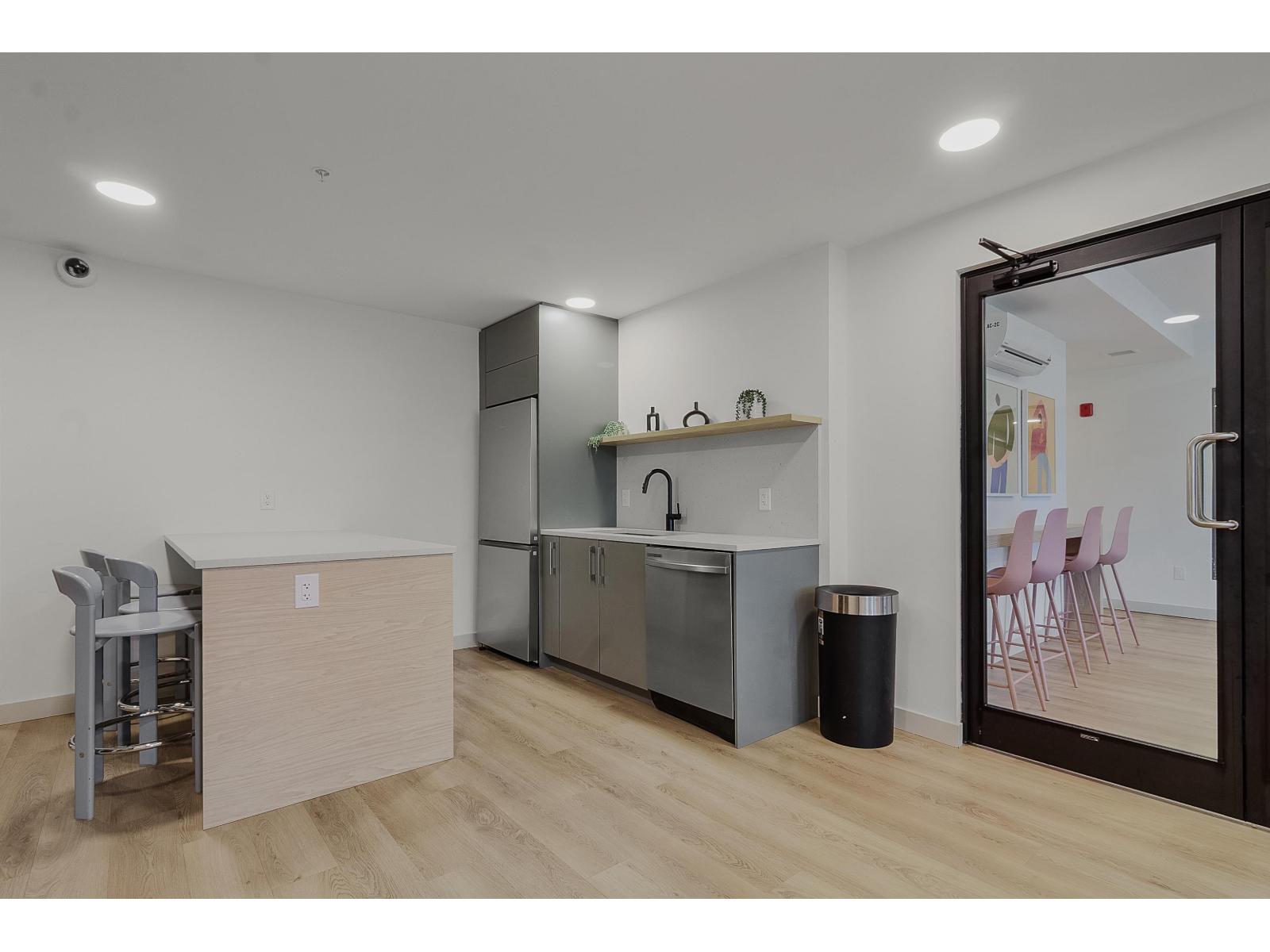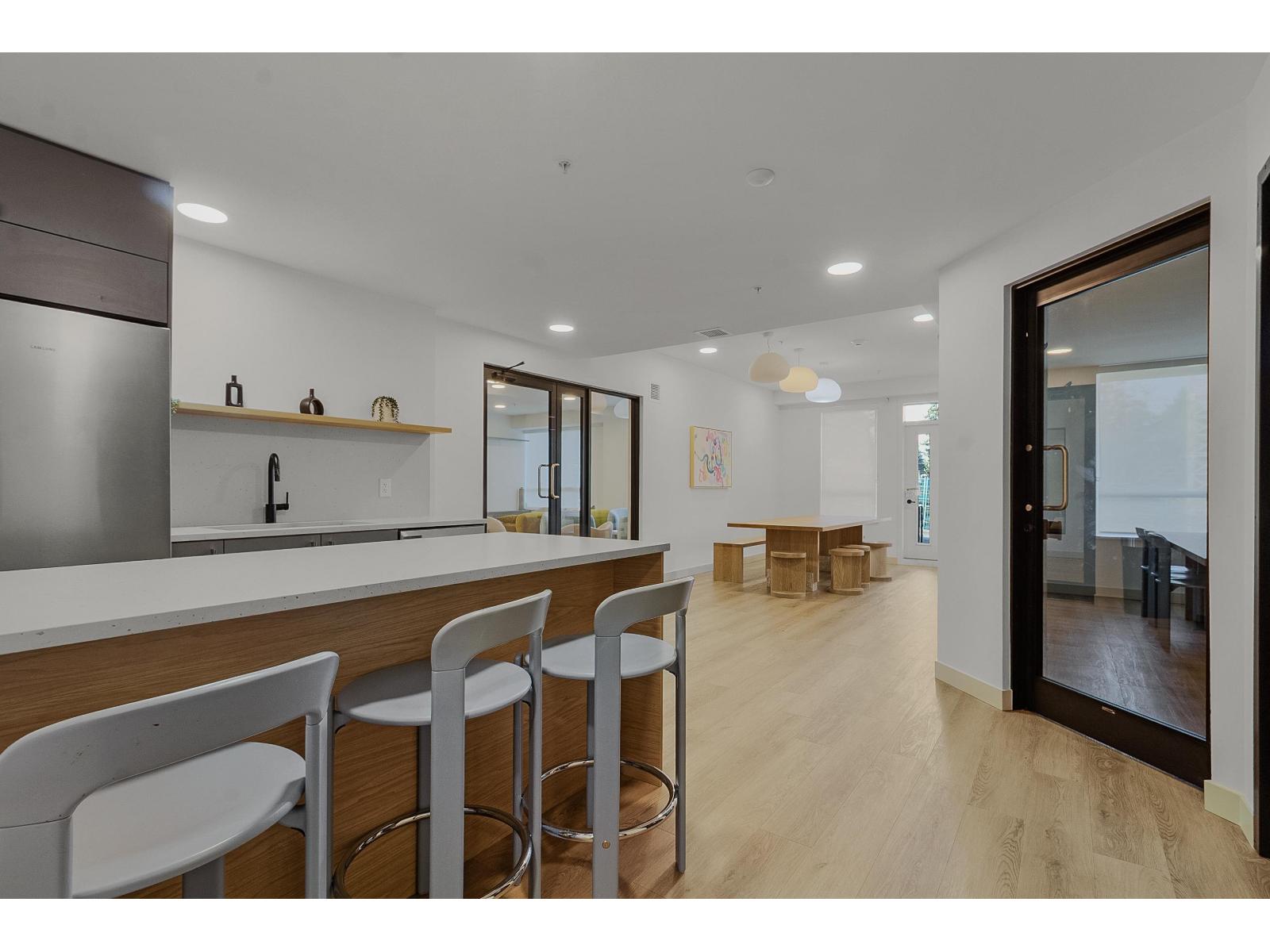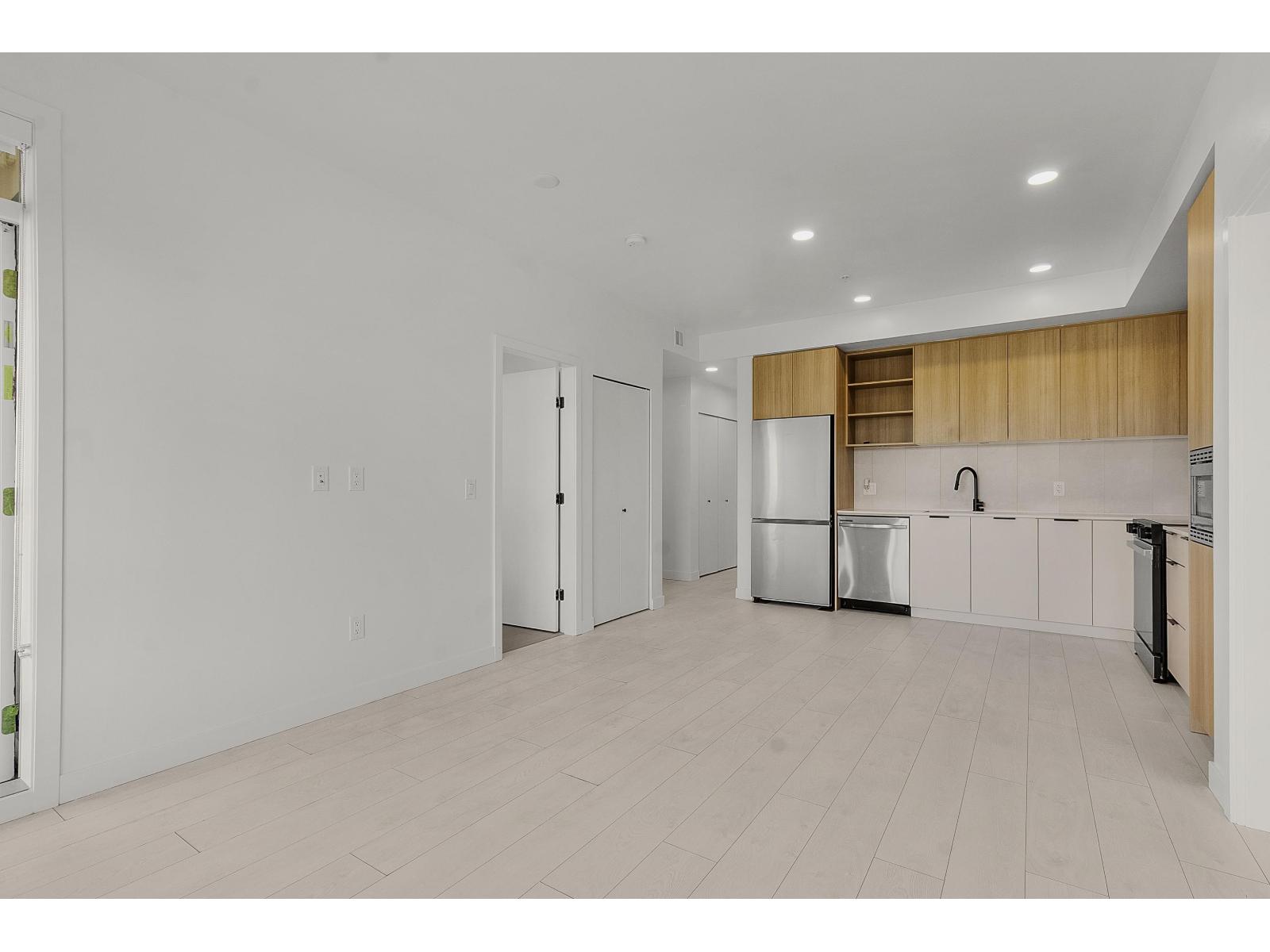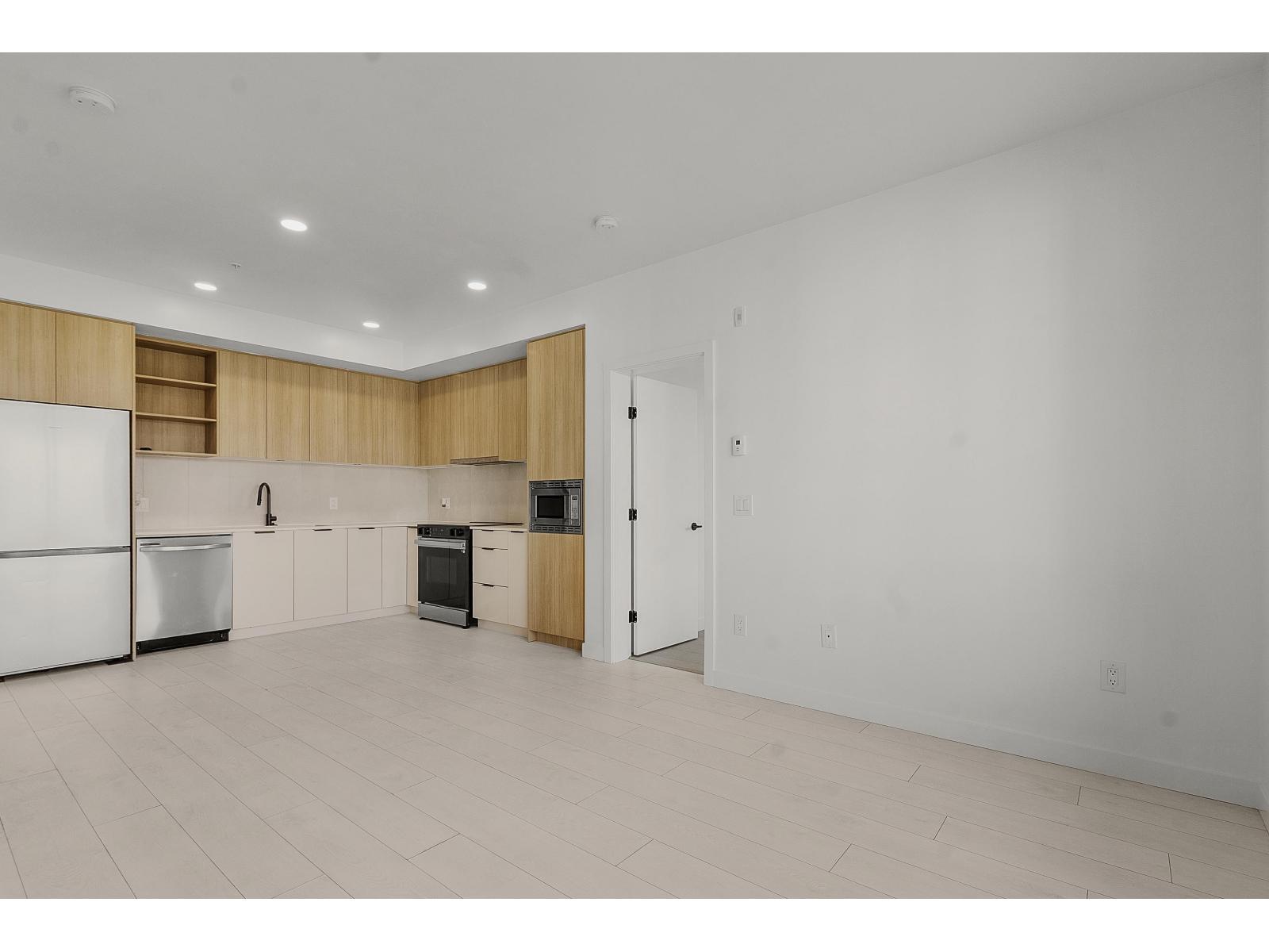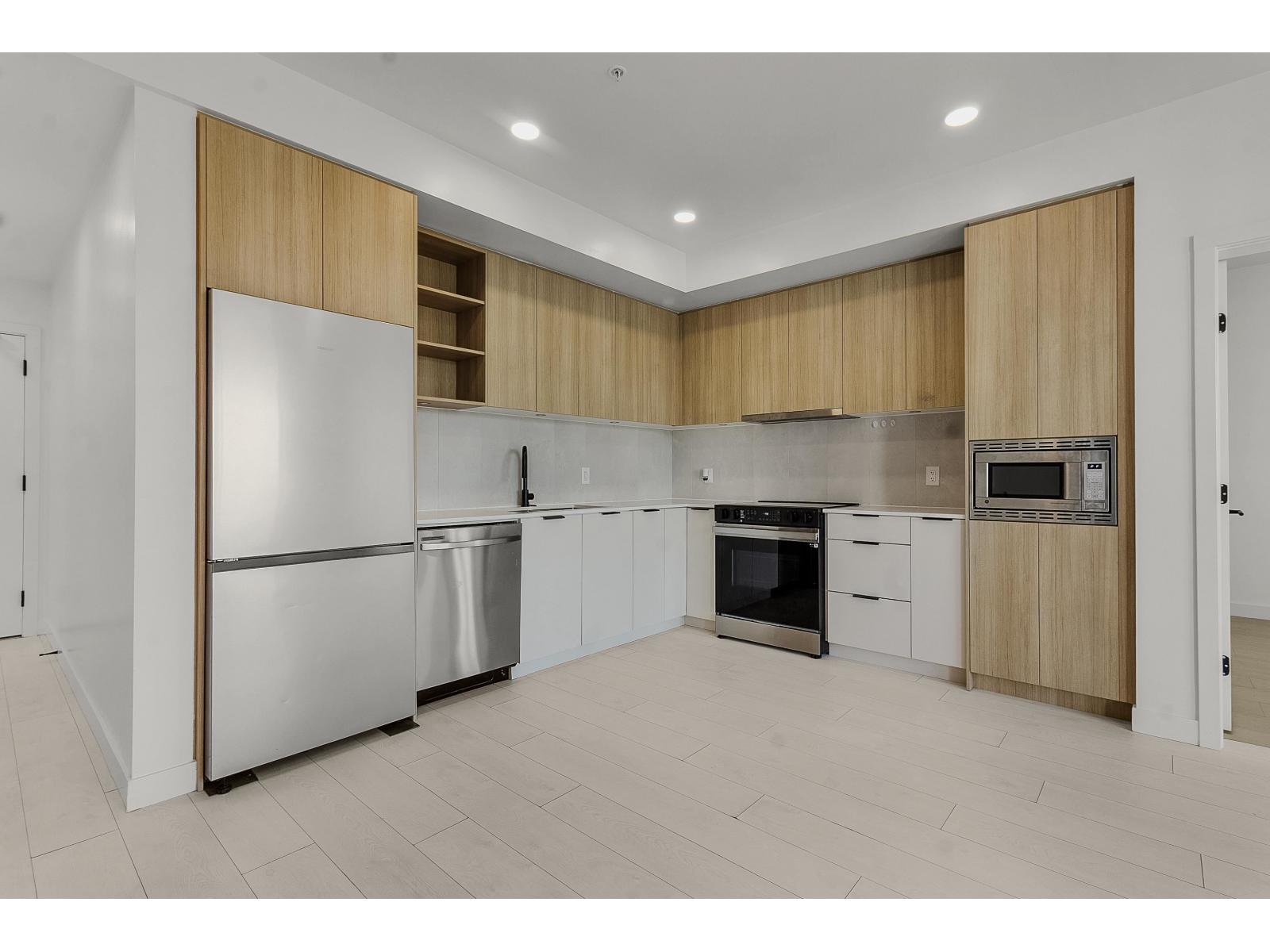 Almost brand new, this bright unit features an open-concept layout with laminate flooring, in-floor heating, and large windows with a non-obstructed view. The sleek kitchen includes stainless steel appliances, contemporary cabinetry, and ample storage. Conveniently located near the elevator, the home comes with 1 parking stall and 1 storage locker. Amenities include a gym, party room with kitchen, outdoor BBQ and fire pit, rooftop deck, ping pong, and shuffleboard. Steps from King George SkyTrain Station, Surrey Memorial Hospital, and Surrey Central Mall, you'll have shopping, transit, and healthcare at your doorstep. Perfect for professionals, small families, or investors, this home delivers modern finishes, prime location, and lifestyle amenities. Don't miss out-book your showing today! (id:9345)...