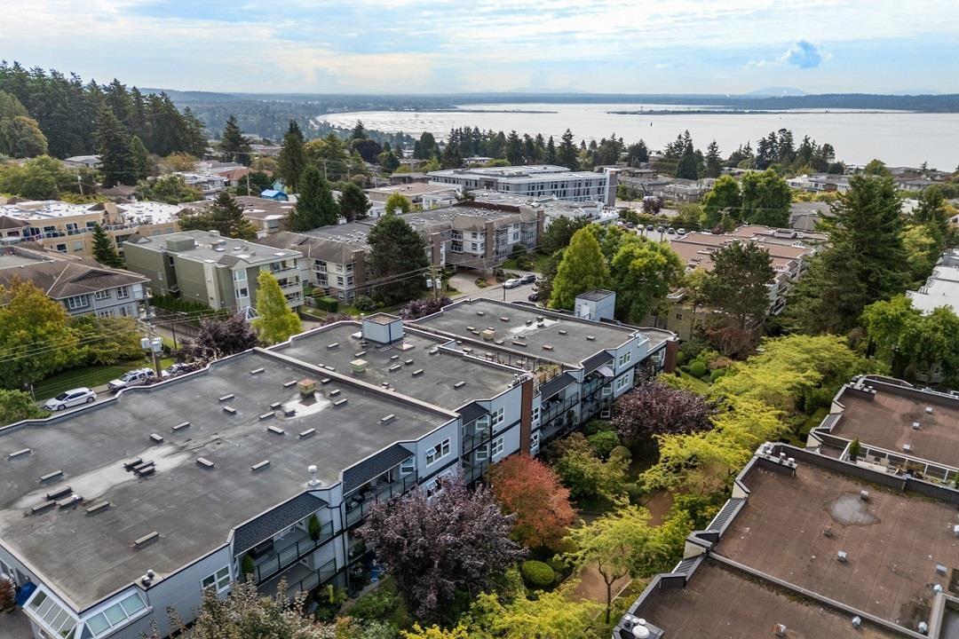 Englesea Manor II, such a nice convenient location for enjoying White Rock. walk score 94: sidewalk safe and well lit, close to transit, 1 block to White Rock Elementary, groceries, errands, parks, dining & entertainment. A rare, peaceful no traffic street. #407 is inside courtyard & facing west. 2 bedroom & 2 full bath, spacious 956 SF. Fresh air, open west facing balcony 92 SF and shed 26 SF on balcony. Secondary school catchment: Semiahmoo with IB program. Strata Fee: $577.05/Month, includes gas fireplace. Secure parking stall #17 / storage locker#14. Full strata package available. Virtual staging implemented on some photos, painted walls white & contemp furniture switched in - lots of possibilities here. Well priced to sell quickly. Rentals allowed & no pet restrictions. (id:9345)...