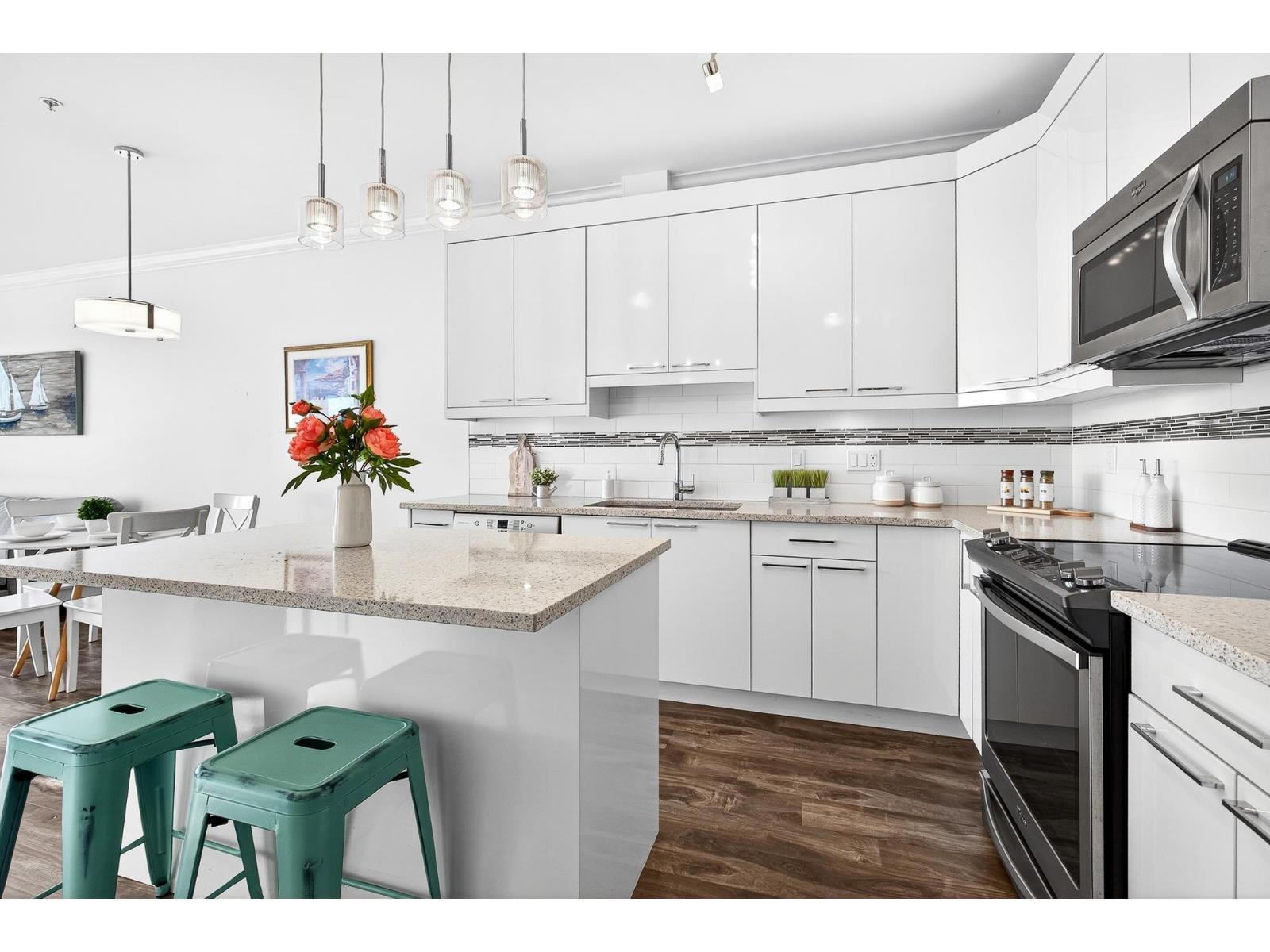 Welcome to Focal Point. This Gorgeous Penthouse suite is sure to catch your attention with breathtaking panoramic views of the valley, city and Mt., Baker. Enjoy a coffee on your spacious patio over looking the beautiful views. This 1 bed, 1 bath home offers an open concept design with 9ft ceilings and generous windows that allow an abundance of natural light in. The kitchen features s/s appliances, soft close cabinets, and quartz counter tops with a large Island. Enjoy the amenities! The building offers a massive roof top common area which is equipped with a bbq, and a party room; perfect for entertaining! In-suite laundry, secure underground parking (1 parking,1 storage unit) Close to retail, coffee shop, transit and more. (id:9345)...