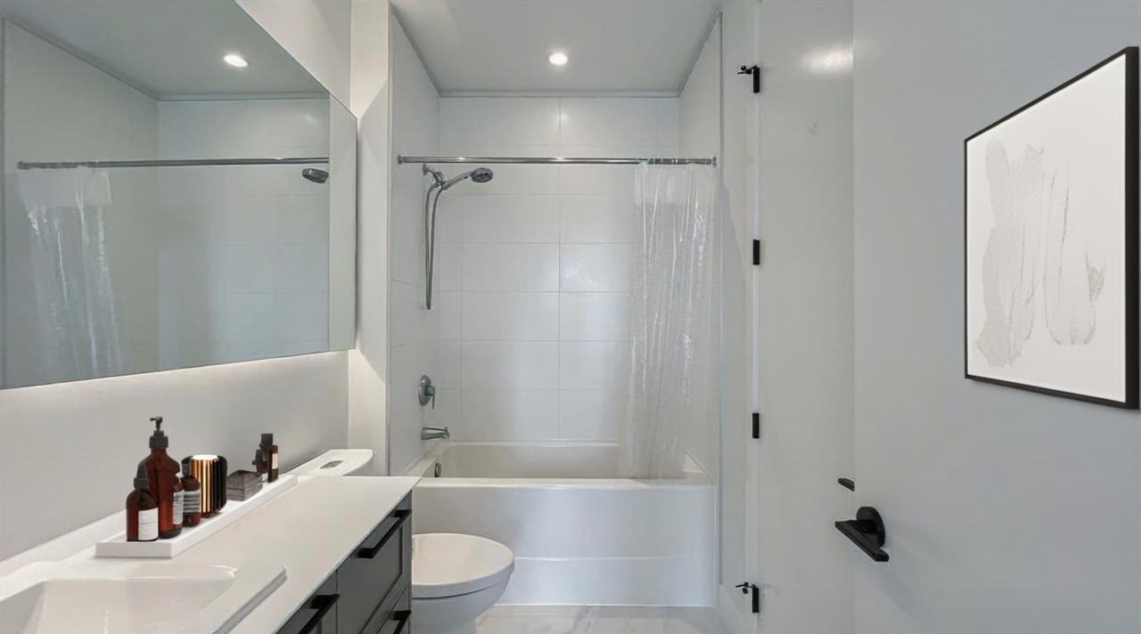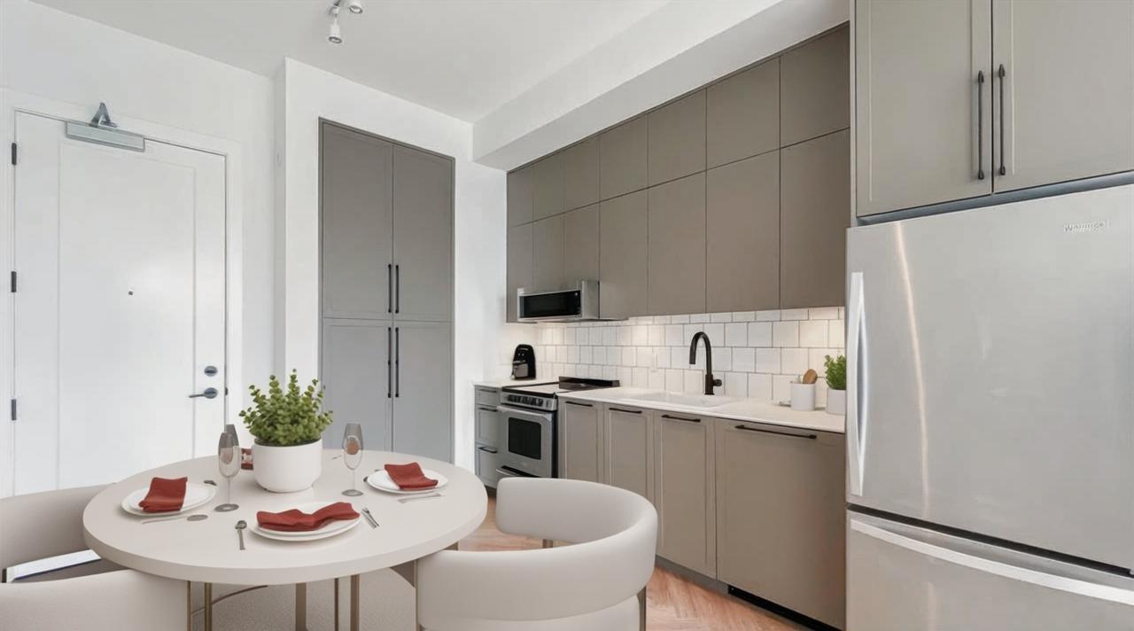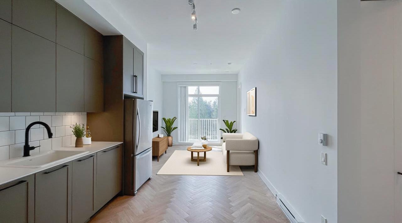 Welcome to The Parker by Mosaic, a modern retreat in one of Surrey's fastest-growing communities. This bright and spacious 1-bedroom features soaring 10 ft ceilings, oversized windows, and stunning herringbone flooring that instantly feels elevated. Cook, dine, and unwind in your Scandinavian-inspired kitchen with quartz counters, sleek cabinetry, and full-size appliances. Stay cool with A/C rough-in, and enjoy ample storage with a walk-in closet and full pantry. Relax on your private balcony or explore Forsyth Park just steps away, perfect for morning jogs or evening dog walks. Located minutes to Surrey Central SkyTrain, SFU, KPU, shops, and restaurants, this home offers unbeatable access for commuters and students alike. Pet-friendly, investor-friendly, and move-in ready. (id:9345)...