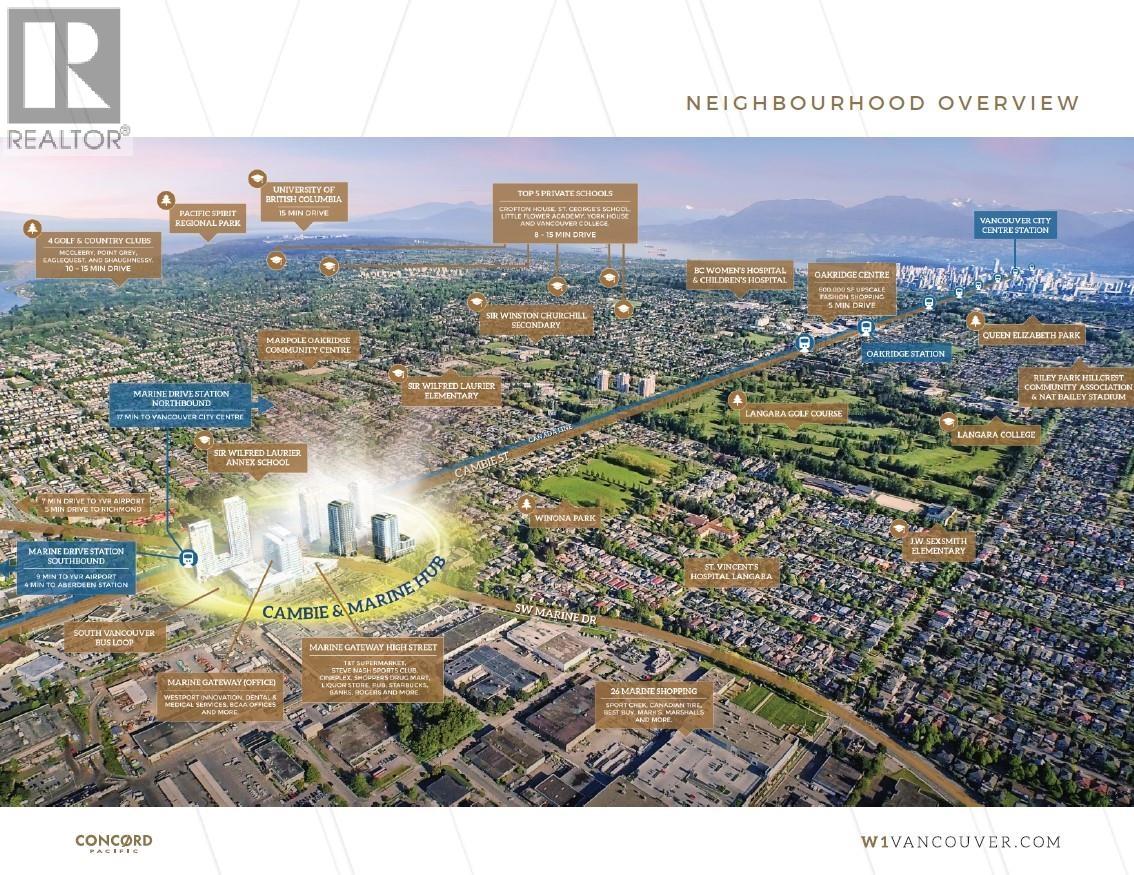 Best deal $/sqft Cambie & Marine! W1 by Concord Pacific! Large 2 level 2 bedroom and den. Sleek design, functional, A/C, wide plank hardwood flooring, gourmet kitchen with Miele appliances, deluxe bathrooms with marble tiles. Flex room den/office on main! Street entry & in building access. Fast access to parking. Amenities: 24/7 concierge, gym, yoga/ping pong room, theatre room, meeting room, banquet hall & more! Daycare next door. Walk across the street to Marine Gateway: T&T, Winners, Shoppers, Starbucks, Canada Line Skytrain! Listed $227K under latest BC Assessment! (id:9345)...