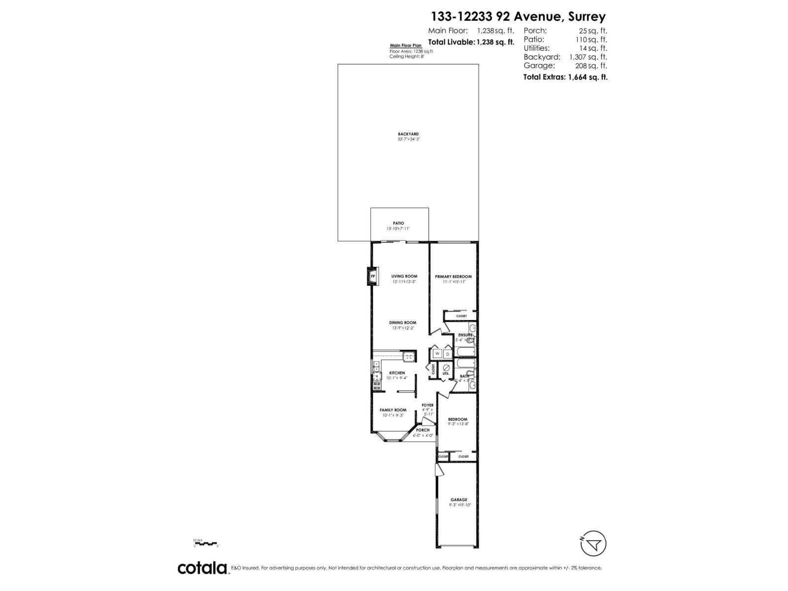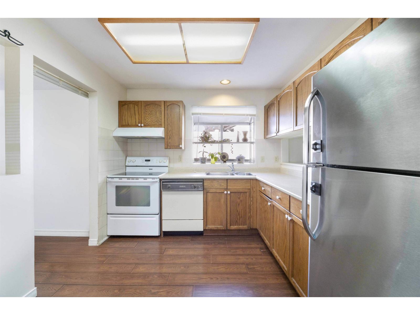 Welcome to Orchard Lake! This well maintained END UNIT rancher townhome offers 1,238 sq. ft. of comfortable living space and a rare, MASSIVE 1,300 sq. ft. backyard that backs onto city property-providing exceptional privacy & the feel of a detached home. Inside, you'll find 2 spacious bedrooms, 2 full bathrooms (including an ensuite), along with a bright, open-concept living/dining area. The well-appointed kitchen opens to a cozy eating area or family room, perfect for everyday living. Orchard Lake is a family-friendly, pet-friendly gated community featuring a picturesque central lake that adds a touch of serenity to daily life. Ideally located just steps from Kirkland Elementary & a nearby church, with easy access to transit, parks, shopping, LA Matheson Secondary, Scott Rd and Nordel Way (id:9345)...