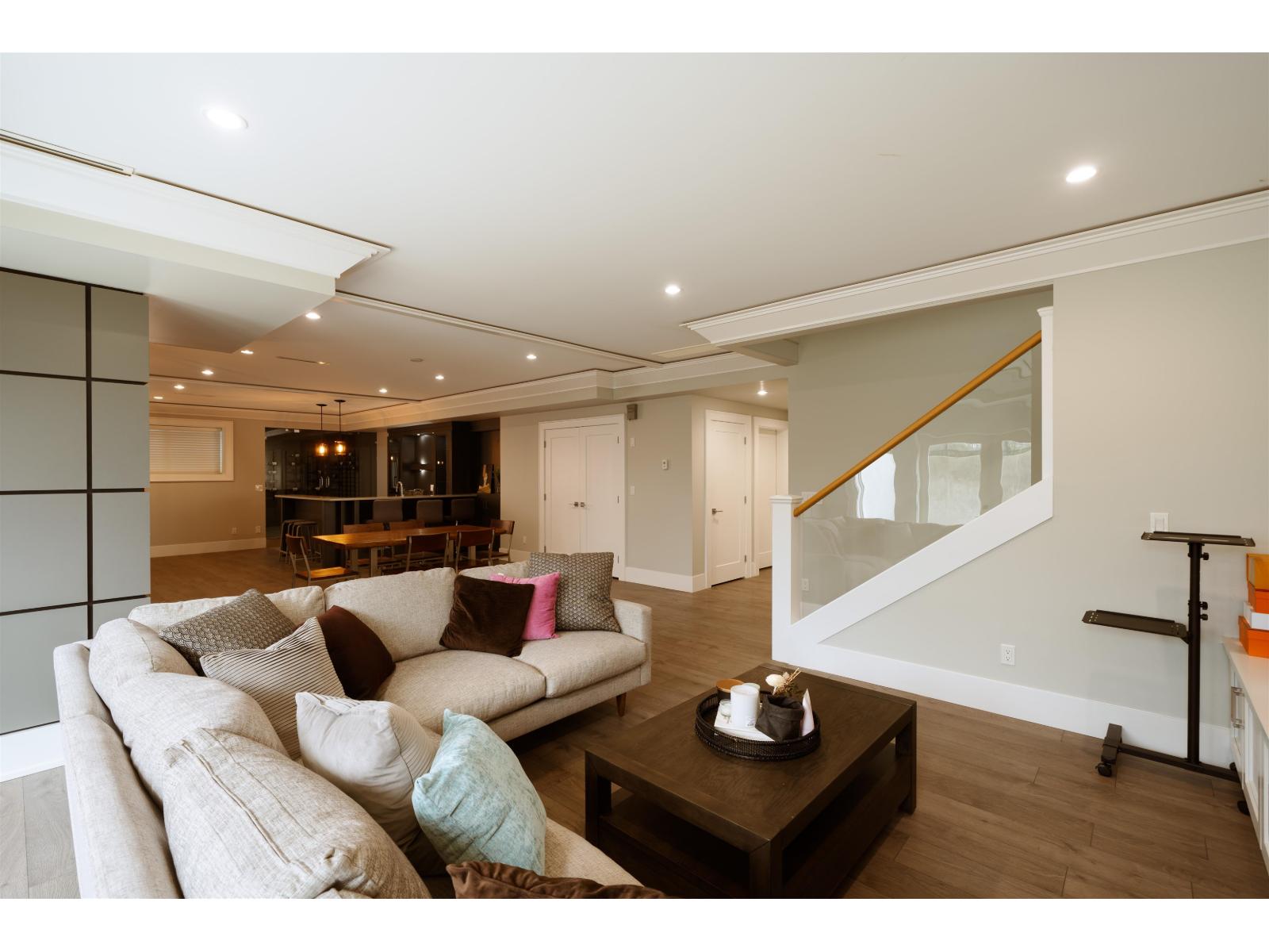 Welcome to Morgan Creek On The Pond, a stunning contemporary home by Raymond Bonter and Castleview Homes. Professionally furnished and styled, this 5,014 sq. ft. residence offers modern luxury with a bright walk-out basement. The main level features a formal dining room, cross-hall parlour or office, butler's pantry, and a chef-inspired kitchen with quartz countertops, Jenn-Air appliances, and a wok kitchen. The great room impresses with 19-foot ceilings, floor-to-ceiling windows, and accordion doors opening to a patio with a BBQ and fire pit-perfect for entertaining. A main-floor ensuite bedroom adds flexibility for guests or extended family.Near southridge private school and great public school near by. (id:9345)...