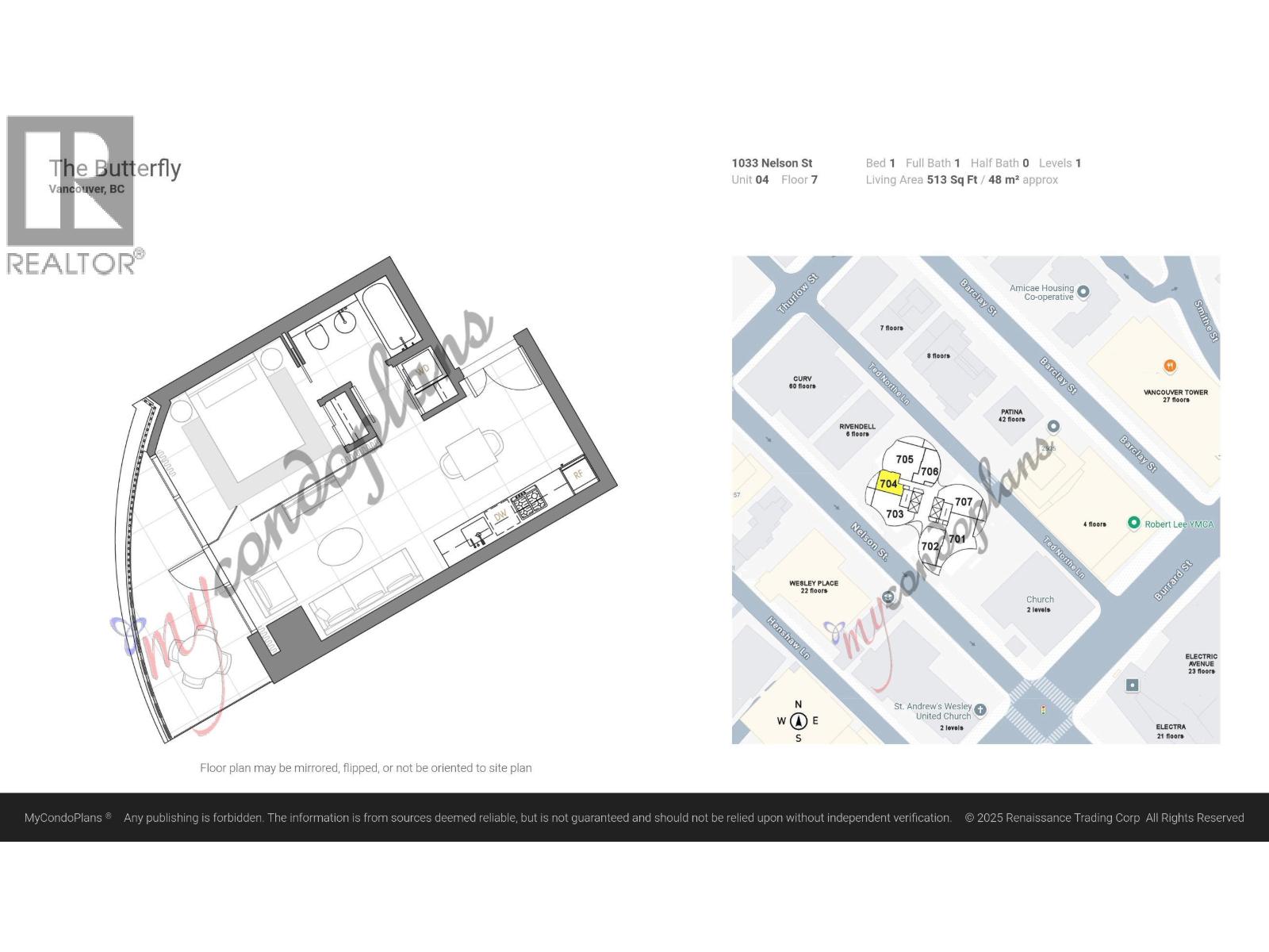 This Apartment is for sale in Vancouver and its located at 704 1033 NELSON STREET, Vancouver, British Columbia V6E0E5. This property's asking price is Call For Price. It has 1 Bedroom(s) and 1 bathroom(s). This property has 512 sqft covered area.