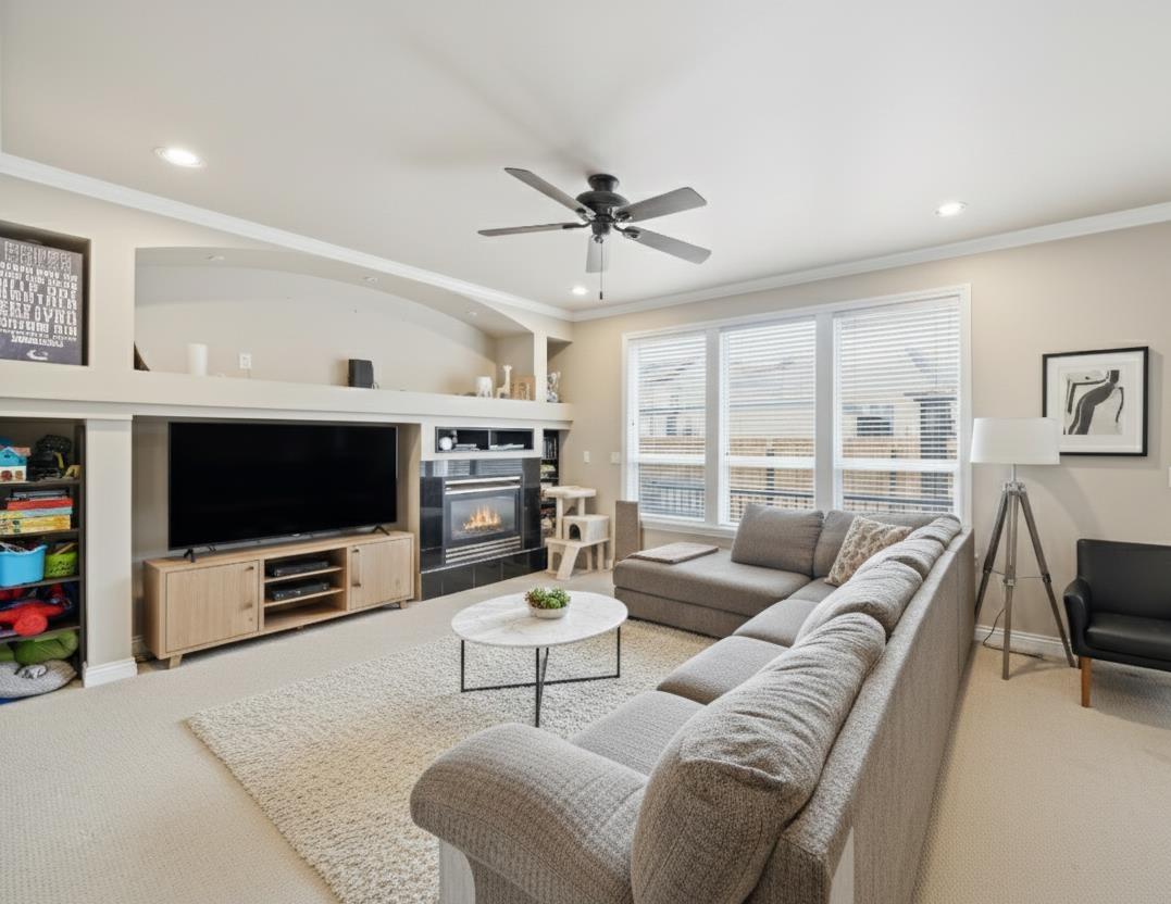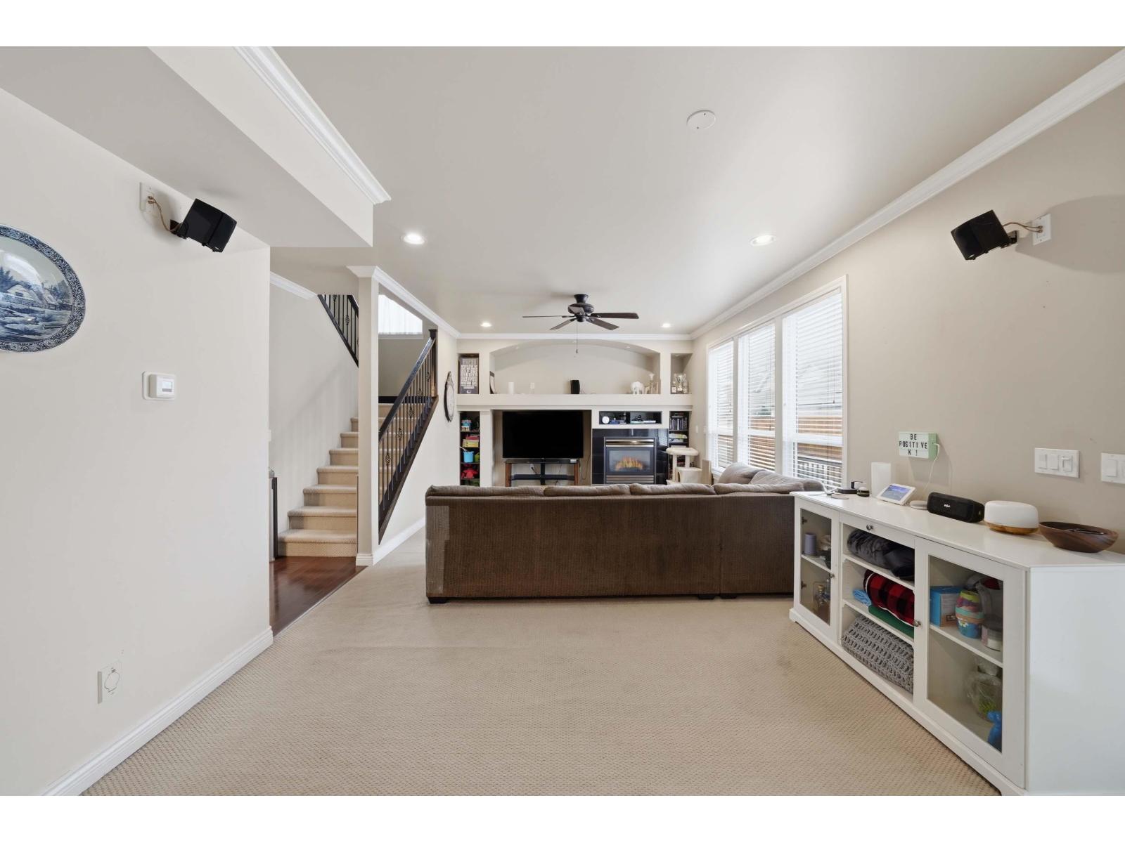 Stunning 2-storey + basement on a quiet cul-de-sac w/ greenspace right out front! Bright open-plan, main floor with hardwood, crown moldings, pot lights, tons of natural light + a huge low-maintenance deck built for hosting. Upper floor boasts 4 spacious bedrooms & 3 baths, plenty of room for everyone plus solid WFH options. Downstairs offers a refreshed 2bdrm suite with separate entry, ideal for in-laws or extra income. South-facing w/ double garage off lane. Brand New cedar fence adds privacy + security. Close to shops, restos, farmer's market, parks, churches & schools. Northview Golf, Cloverdale Ex Grounds & Athletic Park mins away. Easy access to major highways + future SkyTrain. Quiet, comfy, turnkey - your full package. (id:9345)...