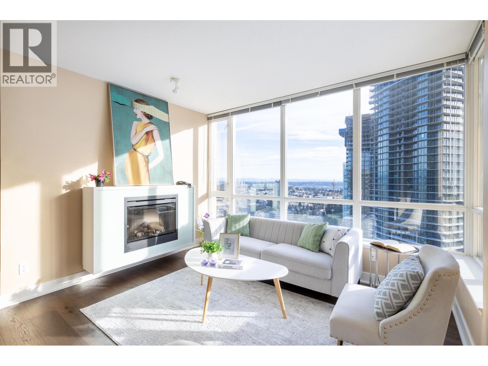 Great location in "Centrepoint", Enjoy the AMAZING DOWNTOWN & MOUNTAINS & CITY views from EVERY bedroom and huge balcony. Bright & Opposite 2 bdrm, 2 full bath SW Corner unit with open plan. Custom built office work station. New water pipe, New engineering hardwood floor, Granite counter top with upgraded glass tile backsplash. Upgraded white diffused glass fireplace in LR. Huge balcony for outdoor BBQ offering 270 degree of unobstructed view of Mt. Baker, Fraser River, Downtown & North Shore. Easy access to skytrain, DT, BCIT & SFU. Architecture by award winning Busby Perkins & Will Architects interior designed by world-renowned Cecconi Simone. Amenities include roof top garden, recreation/exercise & sauna/steam room. Just steps to Metrotown, restaurants. Open house: Sat, Dec/20th, 2-4 PM. (id:9345)...