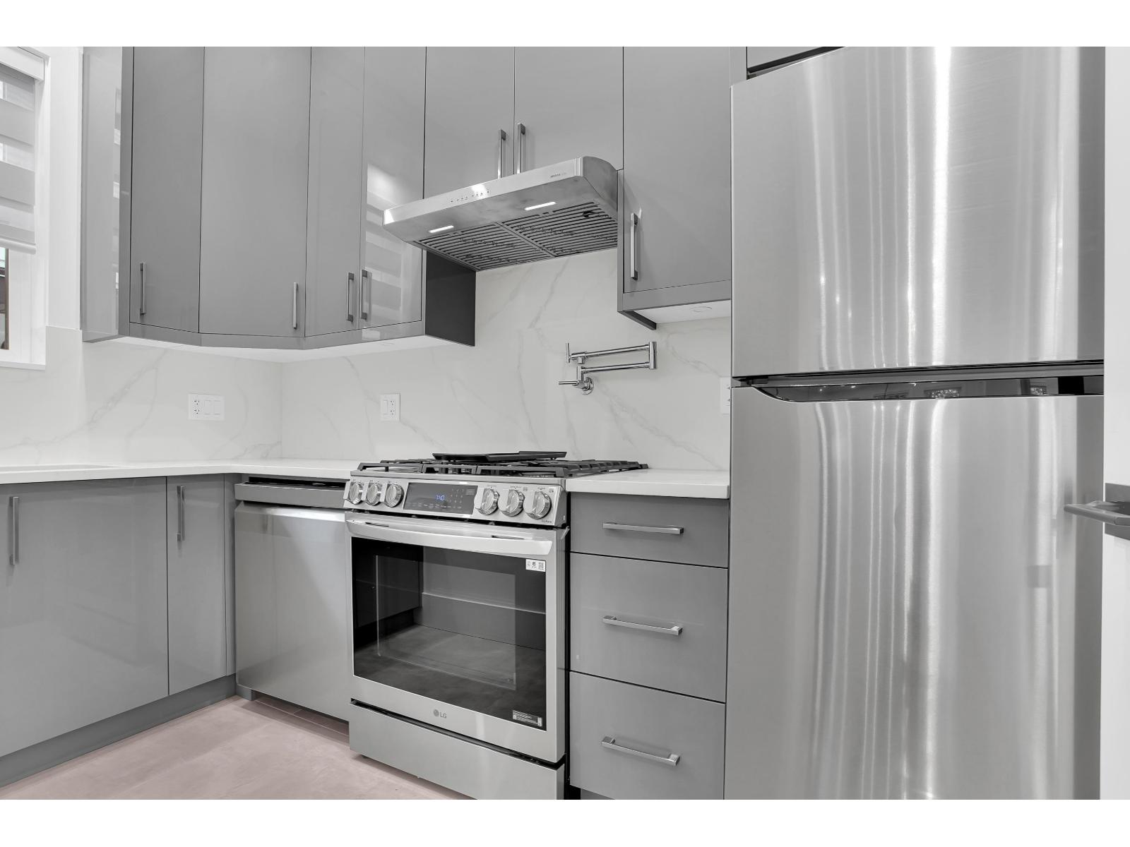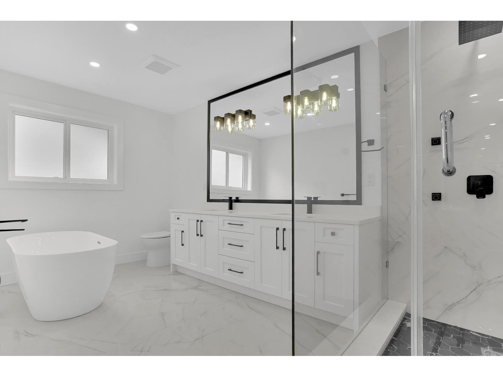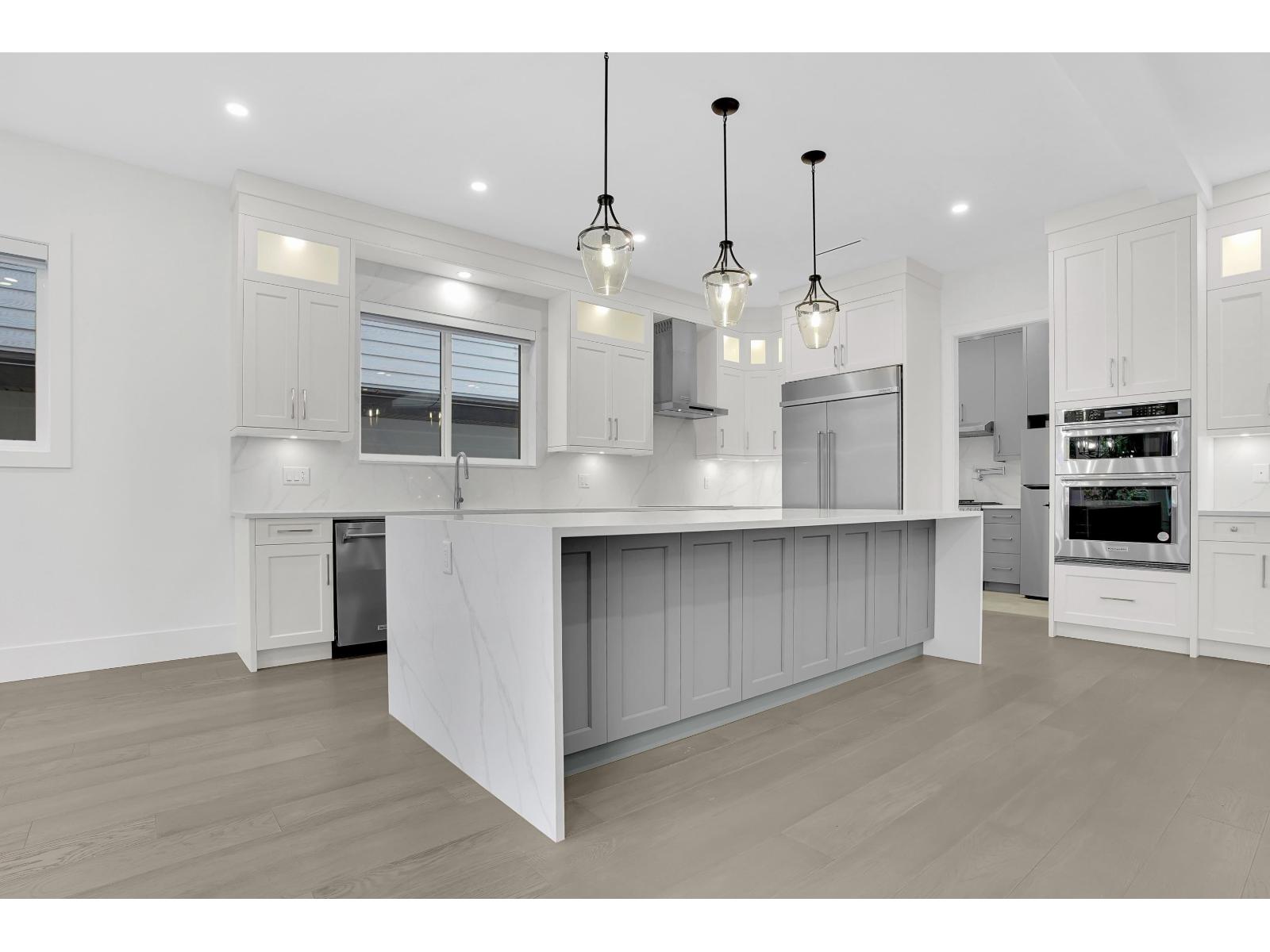 Discover luxury living in this brand new, custom-built home in Cloverdale! As you step inside, you're greeted by a modern open-concept floor plan which is perfect for entertaining and everyday living. Designed to optimize comfort, this residence includes Central A/C, automatic blinds, and RADIANT heating across all 3 levels. The chef's kitchen is a culinary MASTERPIECE, featuring top-of-the-line KitchenAid appliances, PREMIUM countertops/cabinetry, and a spacious spice kitchen + pantry. There are 2 master suites with one conveniently located on the main floor. The master suite features a spa-like bathroom with a freestanding soaking tub, a rainfall shower, and custom walk-in closet. Basement includes a theatre room, mud room, and an expansive 2 bedroom legal suite (id:9345)...