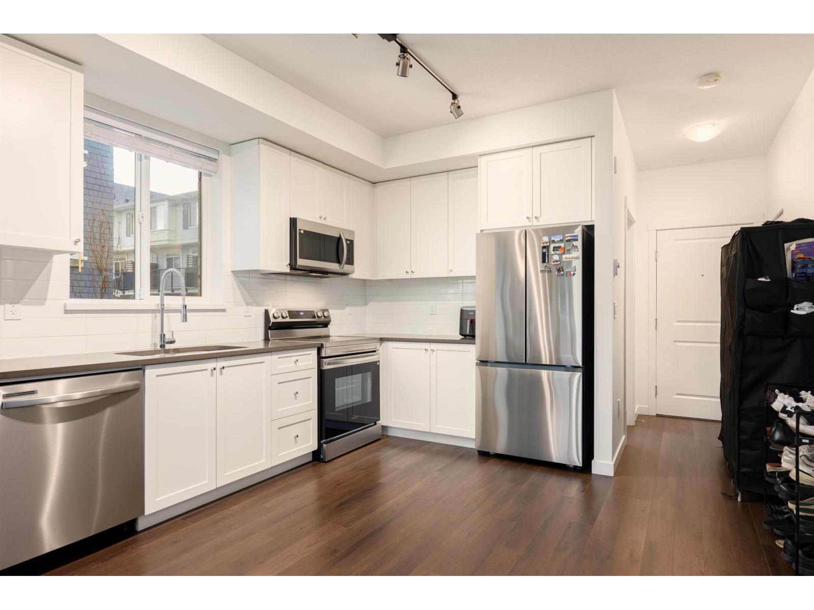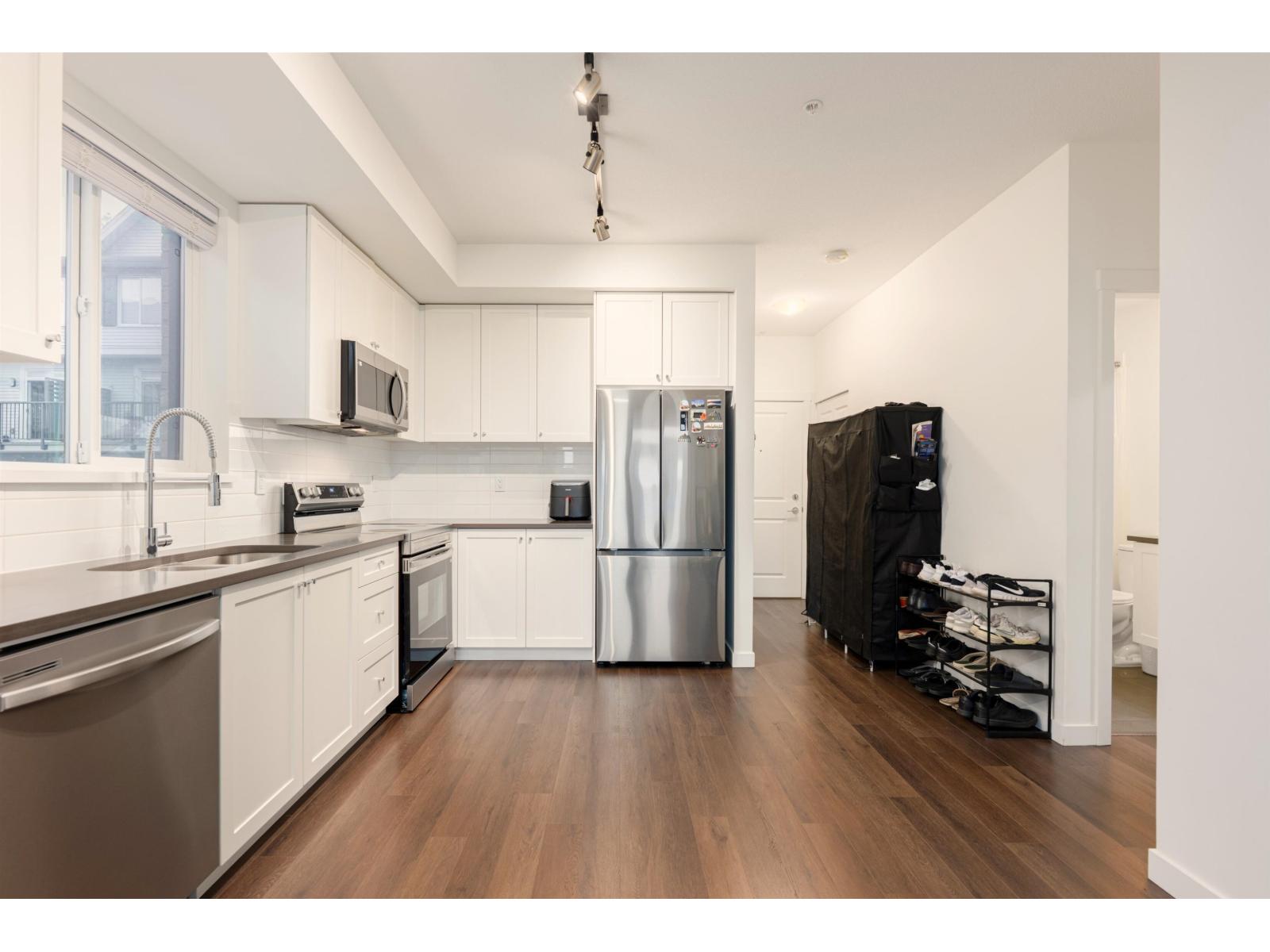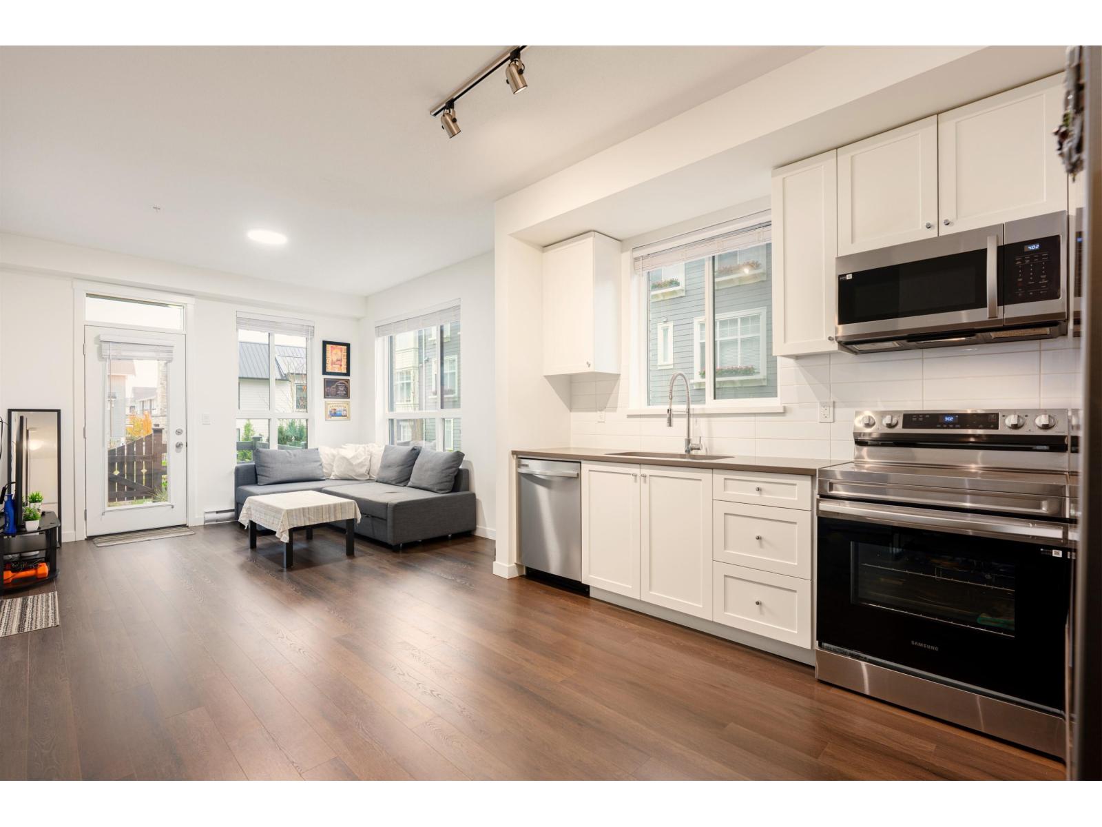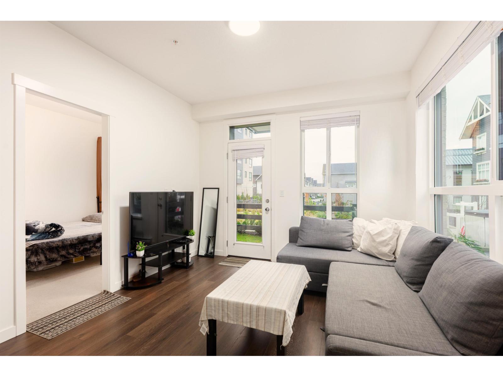 Welcome to this bright and beautifully designed 3-bedroom corner unit offering the rare convenience of ground-level living with direct outdoor access-truly townhouse-style living for the price of a condo. Flooded with natural light from oversized windows, this newer home features an efficient open-concept layout, modern finishes, and seamless indoor-outdoor flow through your walk-out patio. Enjoy the best of both worlds with private exterior entry plus full access through the building, perfect for families, pet owners, or anyone who values ease and accessibility. Located in an exceptional, well-maintained complex, this home is just minutes from schools, shopping, parks, and transit-and within walking distance to the future SkyTrain station. Book your appointment today. (id:9345)...