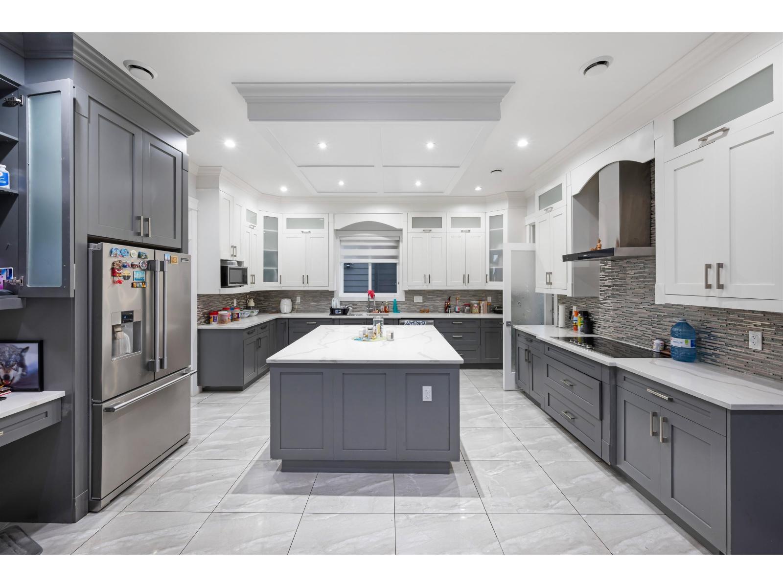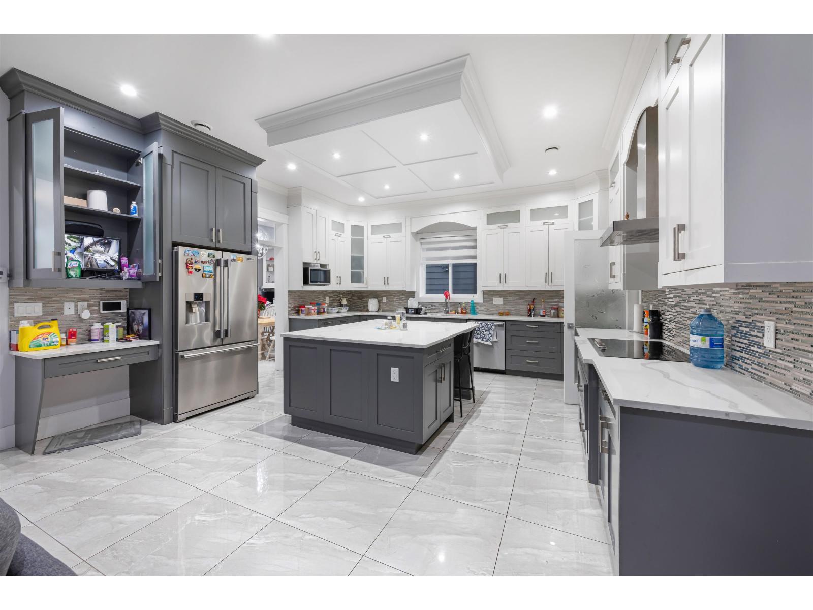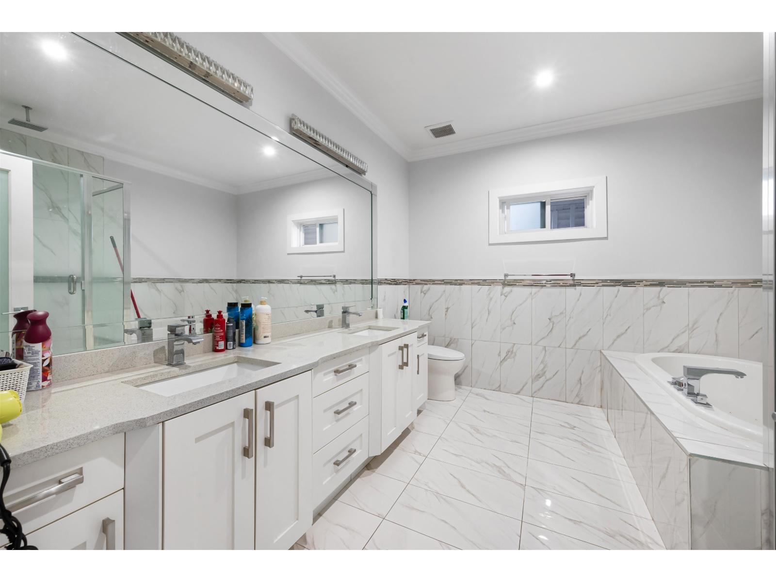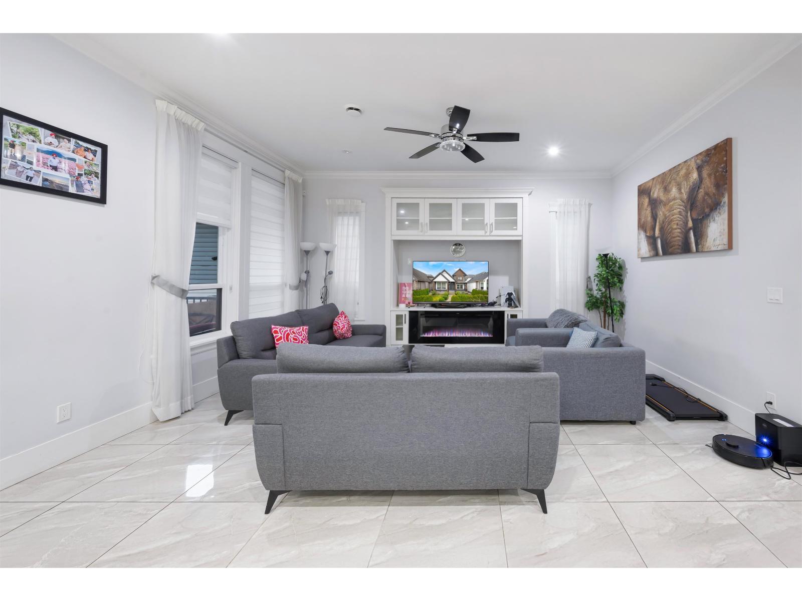 Top West Newton Location.This stunning custom-built home sits on a spacious 5,624 sq. ft. lot, boasting 8 bedrooms and 7 bathrooms. Perfect for families, 2 plus 1 basement suite for Mortgage help.Measurements are approximate, Buyer or Buyer's Agent to verify. This prestigious West Newton 2017 home is meticulously maintained, exceptional quality. Radiant heat, A/C, and HRV, 10' ceiling on the main floor. The main level welcomes you with a grand, open living and dining area, complemented by a luxurious kitchen featuring granite countertops and a convenient spice kitchen. Additionally, 1 Bedroom and 1 full bath grace this floor. Upstairs, discover four bedrooms, 3 accompanied by its own ensuite bath and ample walk-in closets, including two master suites. With a double garage. Very well build custom luxury Home in 2017, kept well in Top West Newton cul-de-sac elegant Location, All Homes are Newer homes on this side of the street. (id:9345)...
