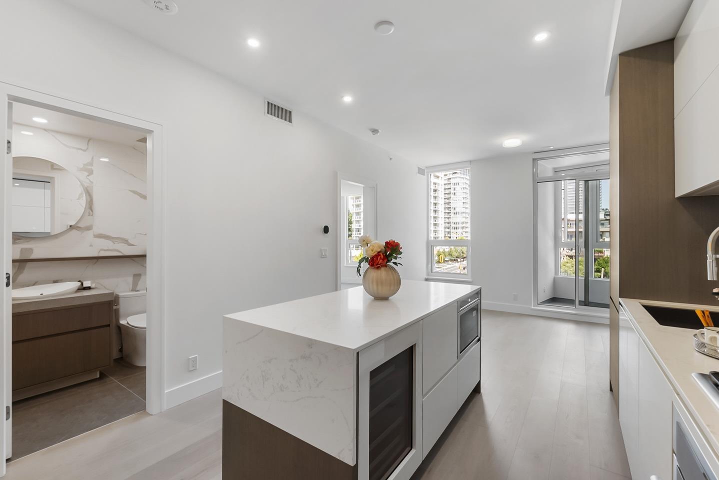 Experience luxury coastal living at Monaco by Solterra in Uptown White Rock! This brand new air conditioned 1 bed+den, 2 bath home offers 725 sq ft of upscale design just 10 minutes away from the beach. Features include engineered hardwood, luxury Thermador appliances, stone counters & backsplash, beverage cooler, solarium, & a den perfect for guests or office space. The spa-like ensuite boasts a soaker tub, walk-in shower, heated floor, automated toilet seat cover & double vanity. Monaco offers rooftop garden, putting green, kids play area, BBQ lounge, dog run, fitness studio, pet spa, and more-all in the heart of uptown White Rock, steps to shops, dining, & roof top ocean views. You will appreciate the details that Soltara had put into this masterpiece and this could be your dream home! (id:9345)...