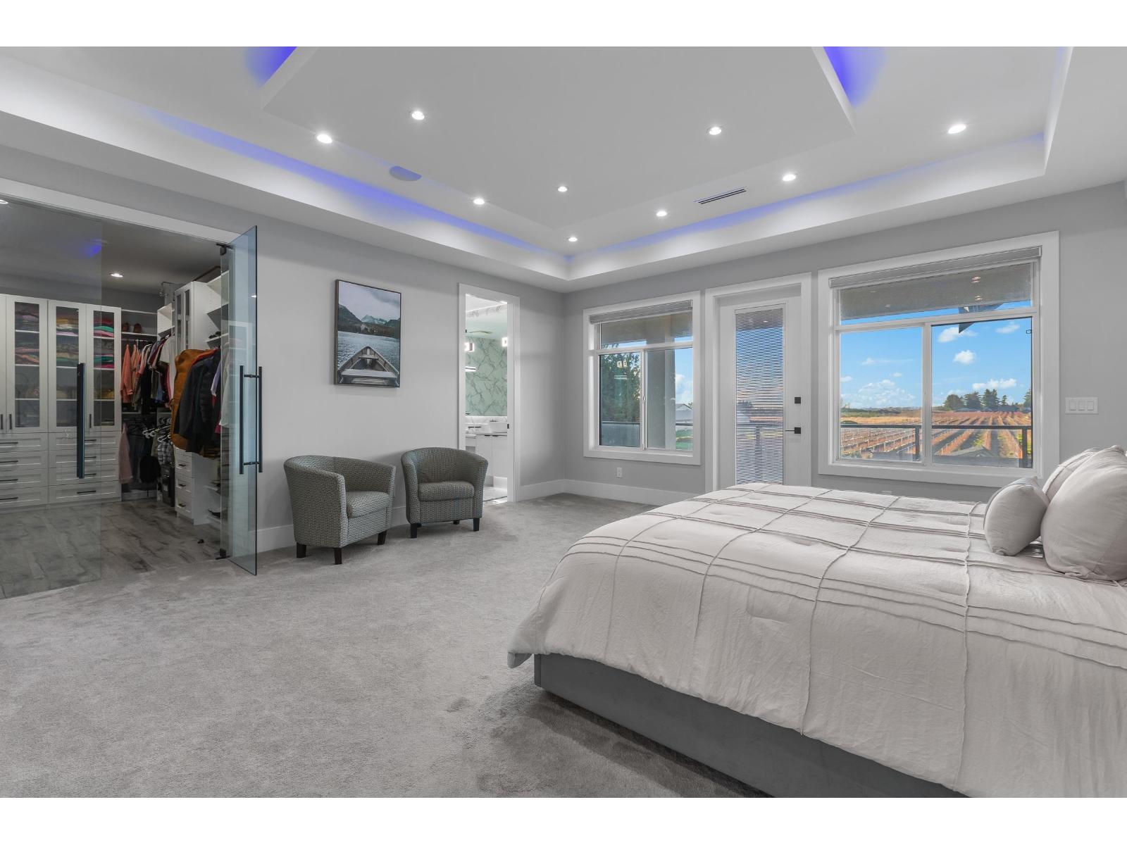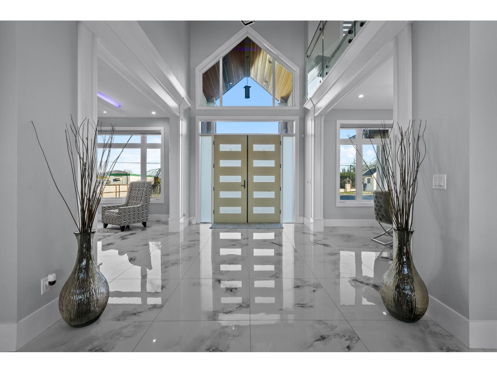ESTATE HOME IN THE BEST LOCATION ABBOTSFORD (OFF KING & HUNTINGDON RD)! 4.85 Acres with exquisite custom built 8539 SQ/FT LUXURY home built in 2021. Approx 3.75 Acres CLAPYSO BLUEBERRIES! Exceptional millwork & massive decks/patio throughout. Main floor boasts grand living & family room, formal dining, entertainment kitchen, spice kitchen, mudroom, office, & spacious primary suite. 5 Primary Bedrooms upstairs with large closets! Entertainer's dream amazing bar & bunker theater room. 2 Bedroom Legal suite & room for in laws. BONUS 1170 SQ/FT accessory building with 4 garages including high Bay door. Portion high ceilings with room for your office or extended family above. AMAZING RENTAL INCOME! Property features 3 driveways, City Water, upgraded Drilled Well, mins to Hwy 1 & ALL AMENITIES. (id:9345)...