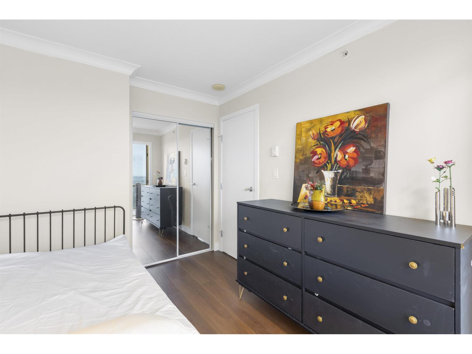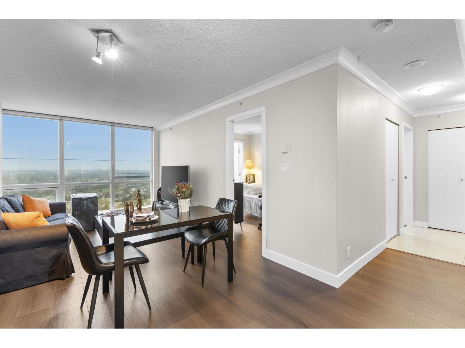 Welcome to Infinity by Concord Pacific! This stunning 2 bedroom, 2 bathroom home offers 760 sq ft of bright living space with unobstructed panoramic views of Holland Park and the City of Surrey. Thoughtfully upgraded with new high-end flooring, new appliances, updated paint and moldings, plus remote-controlled blinds in the living room and bedrooms! Enjoy beautiful winter sunsets and a naturally warm unit that helps reduce heating costs. Strata fee includes hot water and one secure parking stall. Steps to King George SkyTrain Station (future Langley extension hub), SFU Surrey Campus, Holland Park, City Hall, Central City Shopping Centre, T&T, Walmart, banks, restaurants, and recreation. Ideal for end-users or investors, don't miss this opportunity! (id:9345)...