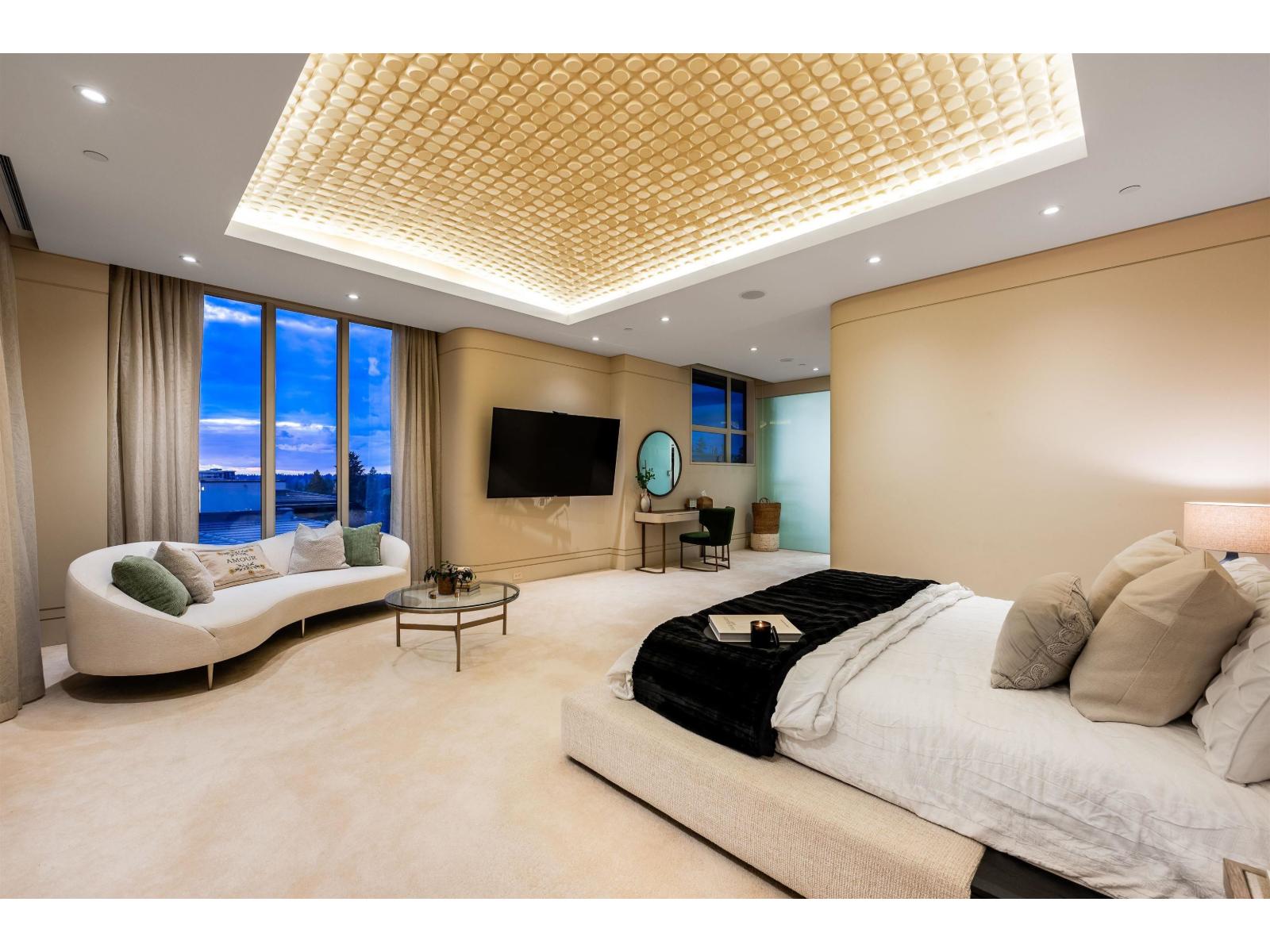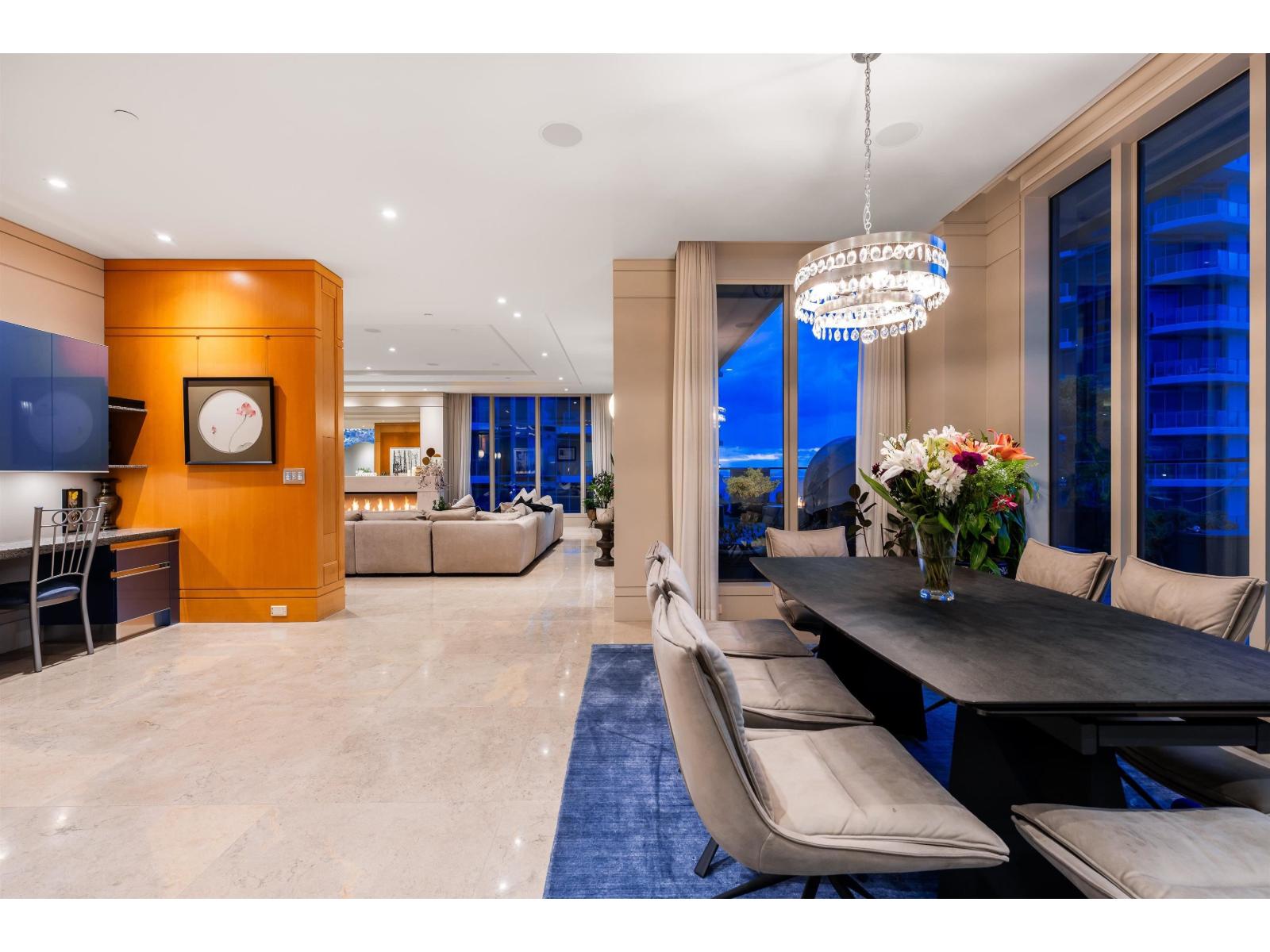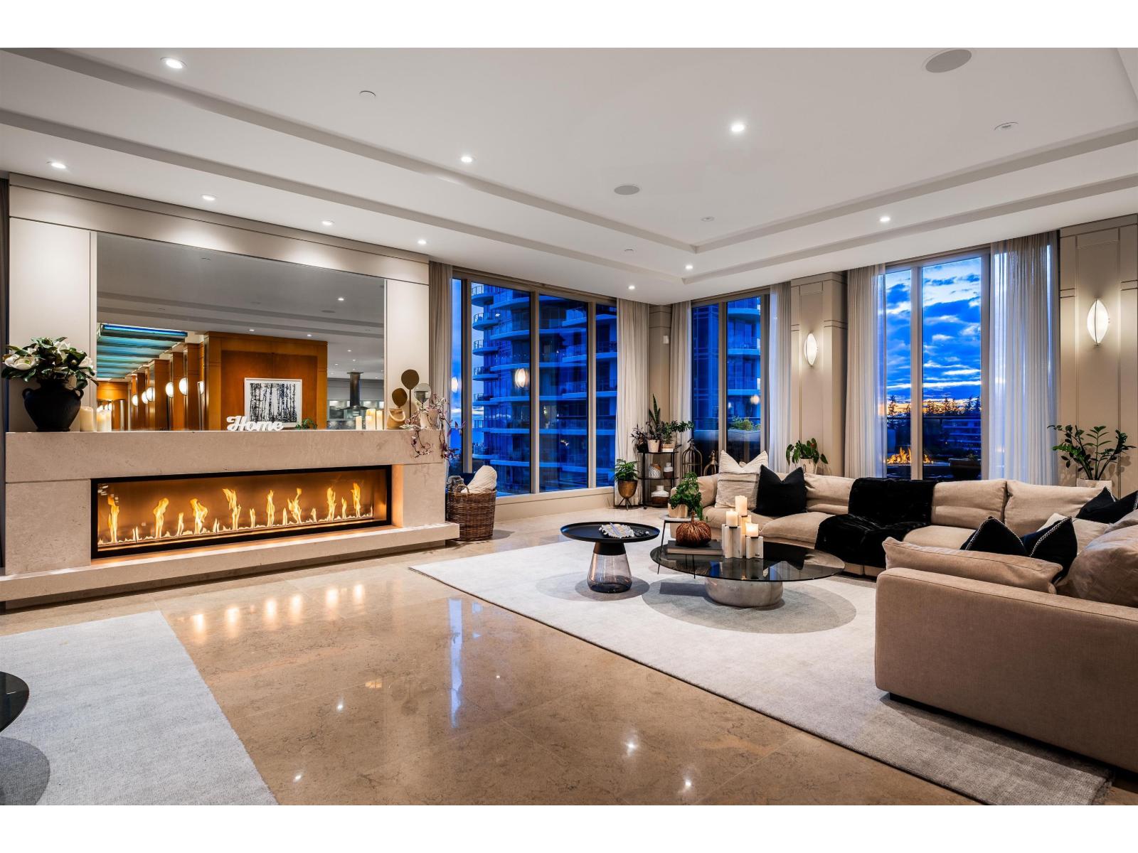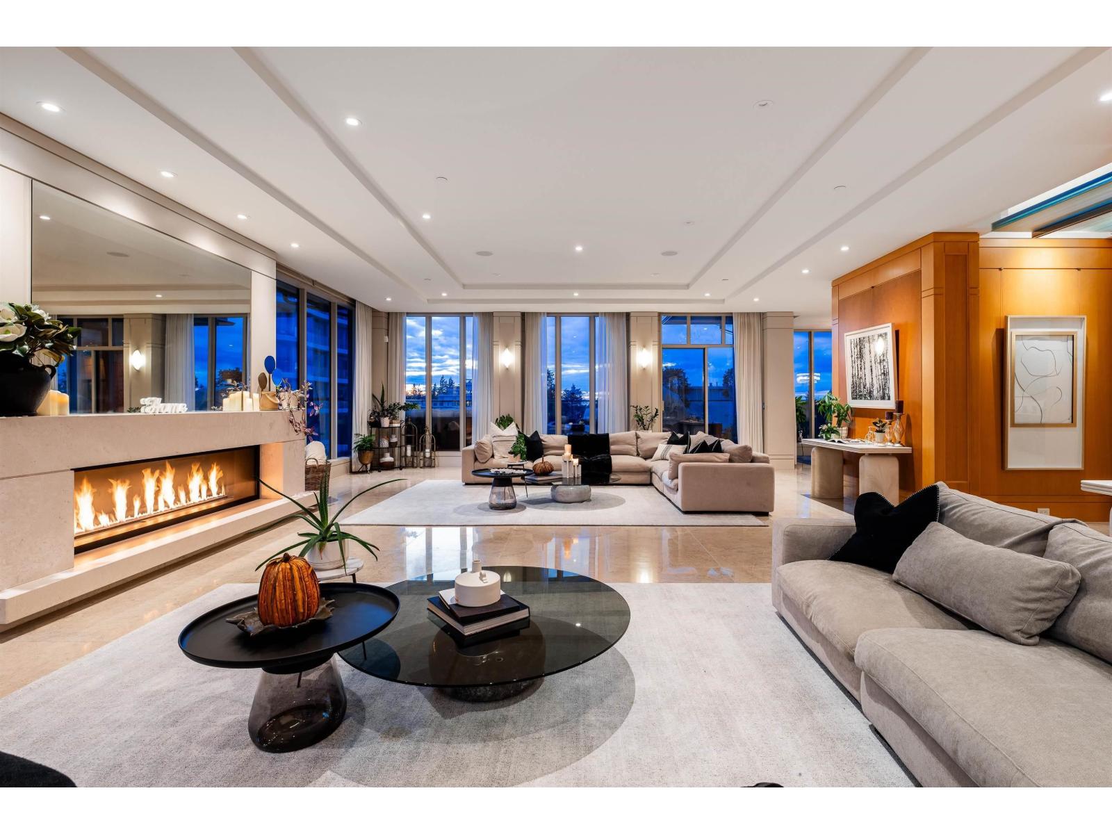 LUXURIOUS PENTHOUSE LIVING - exquisite 5,191sq ft single level residence boasts opulence and grandeur. Completely customized by Richard Salter Interiors with 11' ceilings, marble floors, African maple millwork, one-of-a-kind light fixtures, and Control-4 automation. Ritz-inspired foyer leads to the expansive Great Room with captivating ocean and mountain views. Gourmet Kitchen with Miele & Subzero appliances with adjacent Dining Room and patio access. Private Primary Bedroom wing complete with 2 dressing areas and a lavish ensuite. 2 additional guest bedroom suites, and an office tucked away for functionality. Over 1,400sqft of outdoor living space with Eastern & Western exposure, 4 parking stalls and much more. Undoubtable the finest penthouse offering in the Fraser Valley; MUST SEE! (id:9345)...