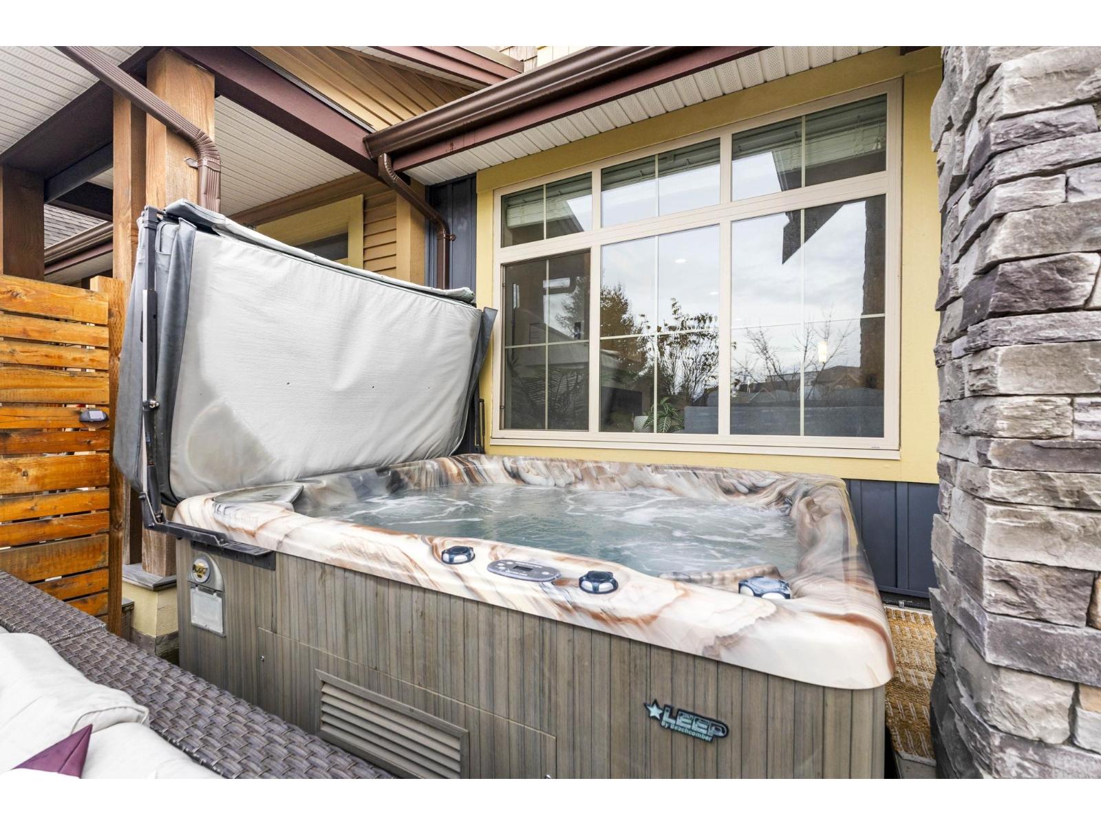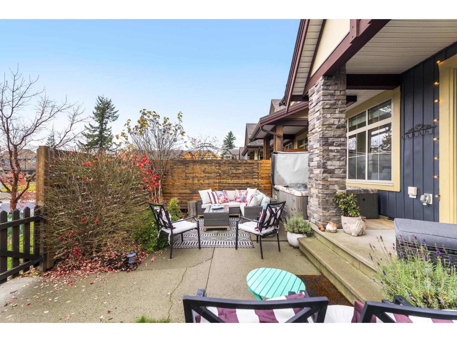 END UNIT ROW HOME IN LINDY'S CROSSING, BACKING LINDYS PARK! 1 of 6 row homes (non strata) in this location, that do not become available often! Beautiful 2 story w/ bsmt floor plan over 2,356sqft w/ 4 bdrms, 4 bathrms, has A/C, fresh paint, gutter guards, & HOT TUB! Modern open concept main living area w/ a spacious kitchen w/ a large island, quartz counters, & stainless steel appliances. Bright living room w/ south west exposure, dining room, w.i pantry, & powder room. Beautiful primary bedroom upstairs w/ vaulted ceilings, w.i closet, and ensuite w/ a dual vanity. 2 other bdrms, bathroom, & laundry above. Rec room, massive bedroom w/ w.i closet, 4pc bath, and a great storage room all in bsmt. Peaceful, private yard w/ hot tub backing onto a park. Walking distance to the Vedder River! * PREC - Personal Real Estate Corporation (id:9345)...