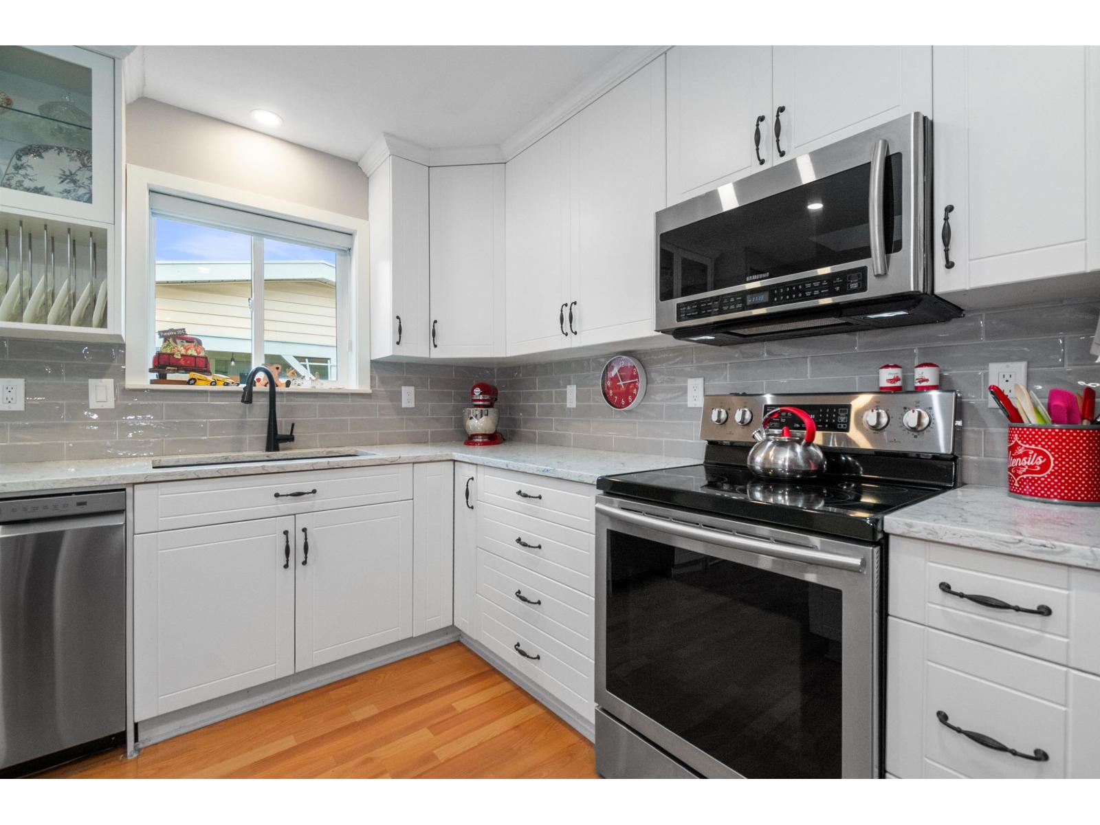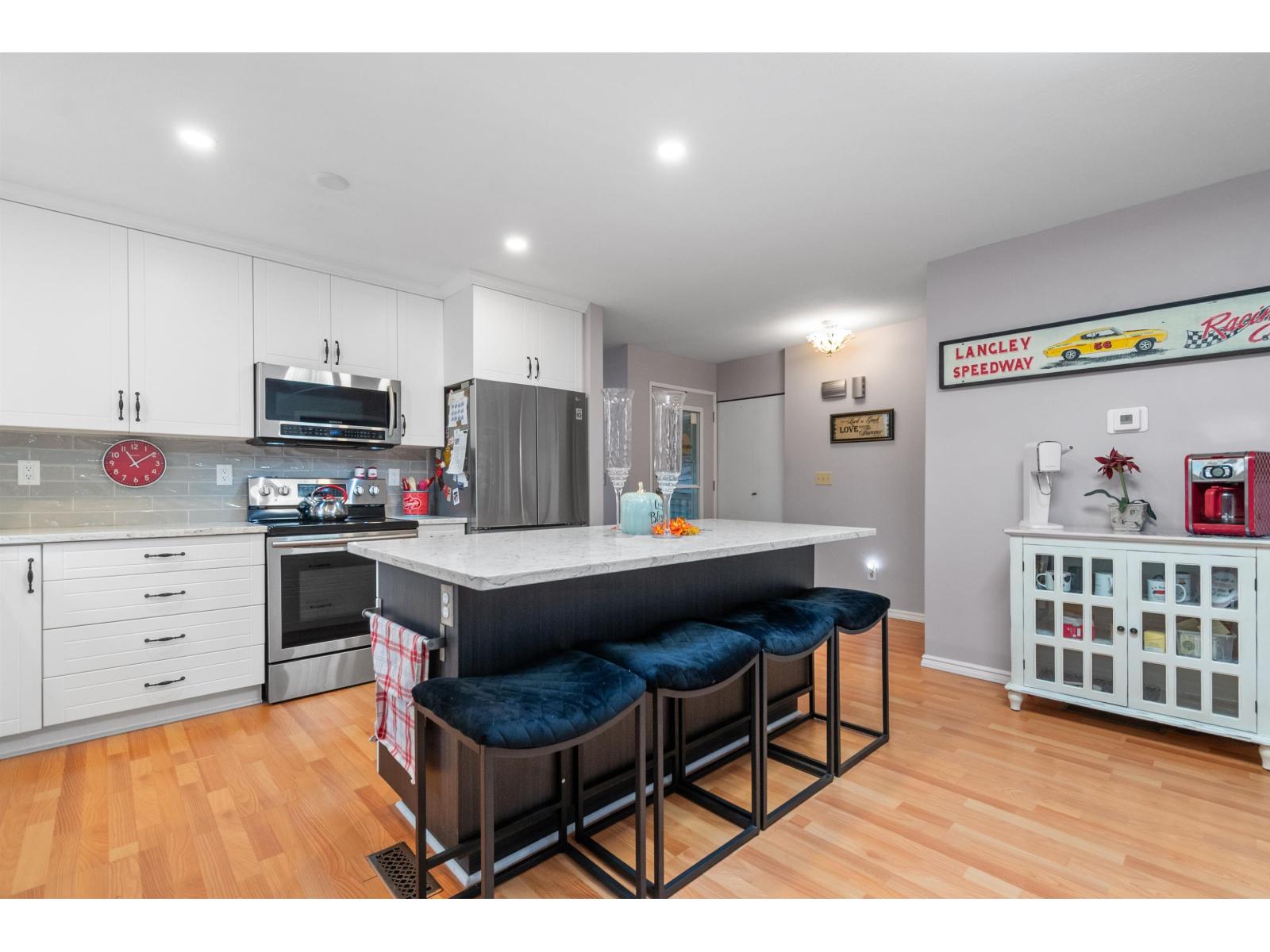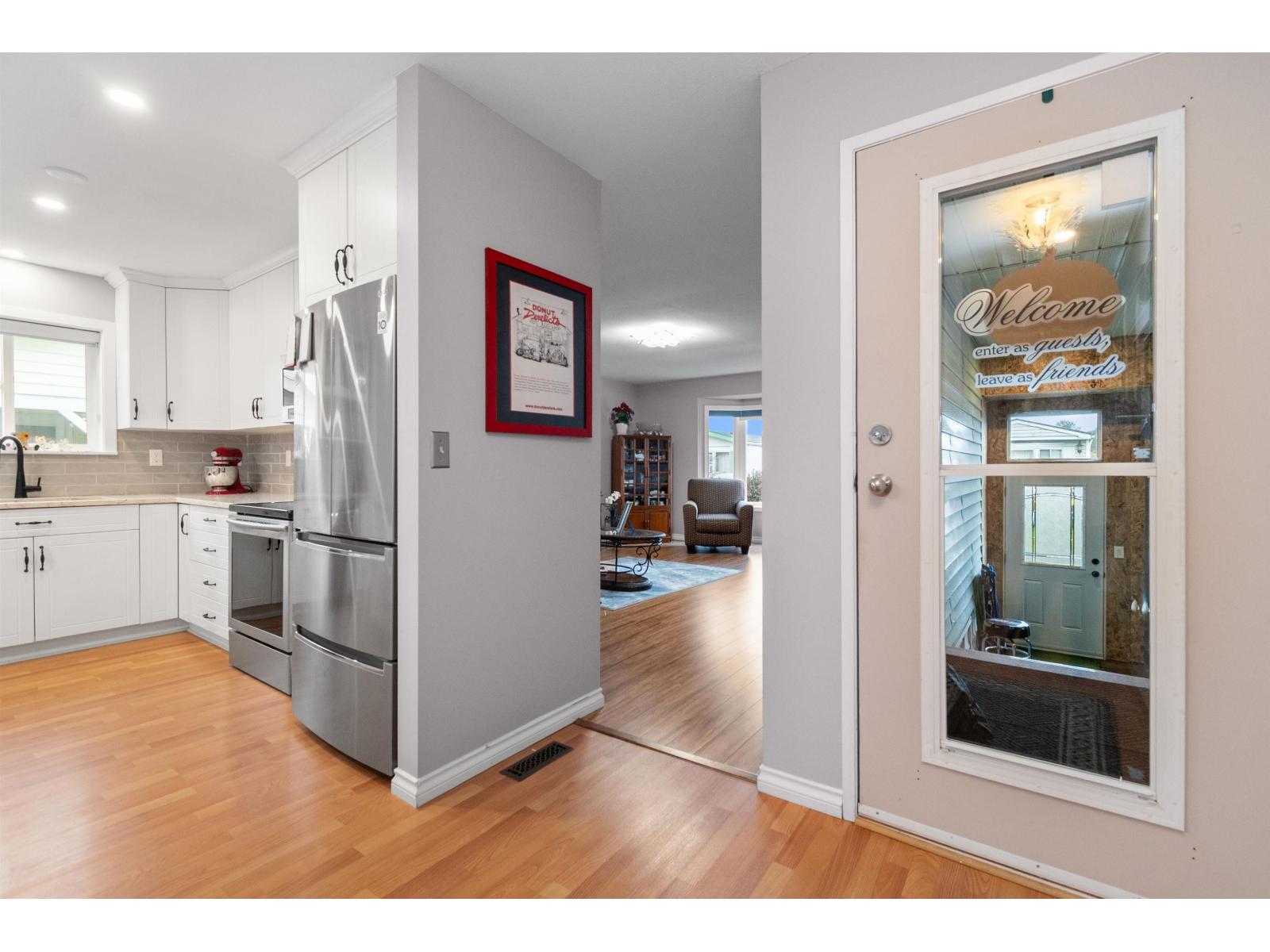Welcome to 40+ Rainbow Estates! This beautifully updated 2-bed, 2-bath home with a flex room (ideal office or den) offers over 1,700 sq. ft. of bright, open living. Remodeled kitchen with quartz counters, tile backsplash, soft-close cabinetry, and large pantry. Updated bathrooms, fresh paint, vinyl windows, PEX plumbing, newer roof, 2x6 construction, and forced-air natural gas furnace with A/C. Cozy gas fireplace for year-round comfort. Fully landscaped yard with artificial turf, garden beds, 10x16 patio, 8x10 shed, plus single-car garage and parking for two more vehicles on rubberized driveway. Centrally located near shopping, hospital, and leisure centre. New lease to 2072, low monthly fees, free RV parking, and no property transfer tax make this an exceptional opportunity! * PREC - Personal Real Estate Corporation (id:9345)...